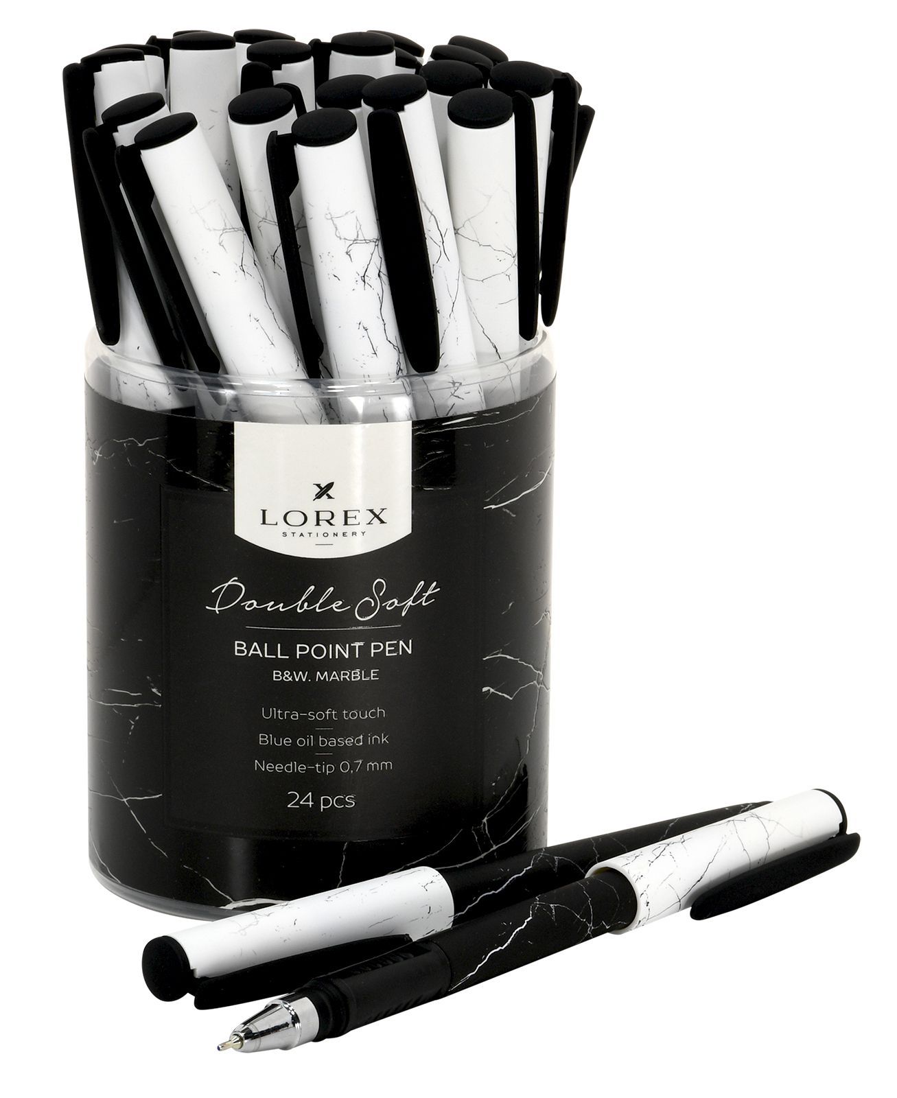 Ручки серии Double Soft — это среднего размера элегантный корпус изготовленный по технологии Ultra-soft touch, а также мягкий грип в зоне захвата. Чернила на масляной основе. Корпус с ярким рисунком. Игловидный пишущий узел диаметром 0,7 мм. Длина стержня — 133 мм.