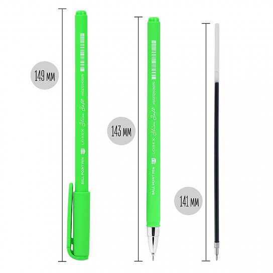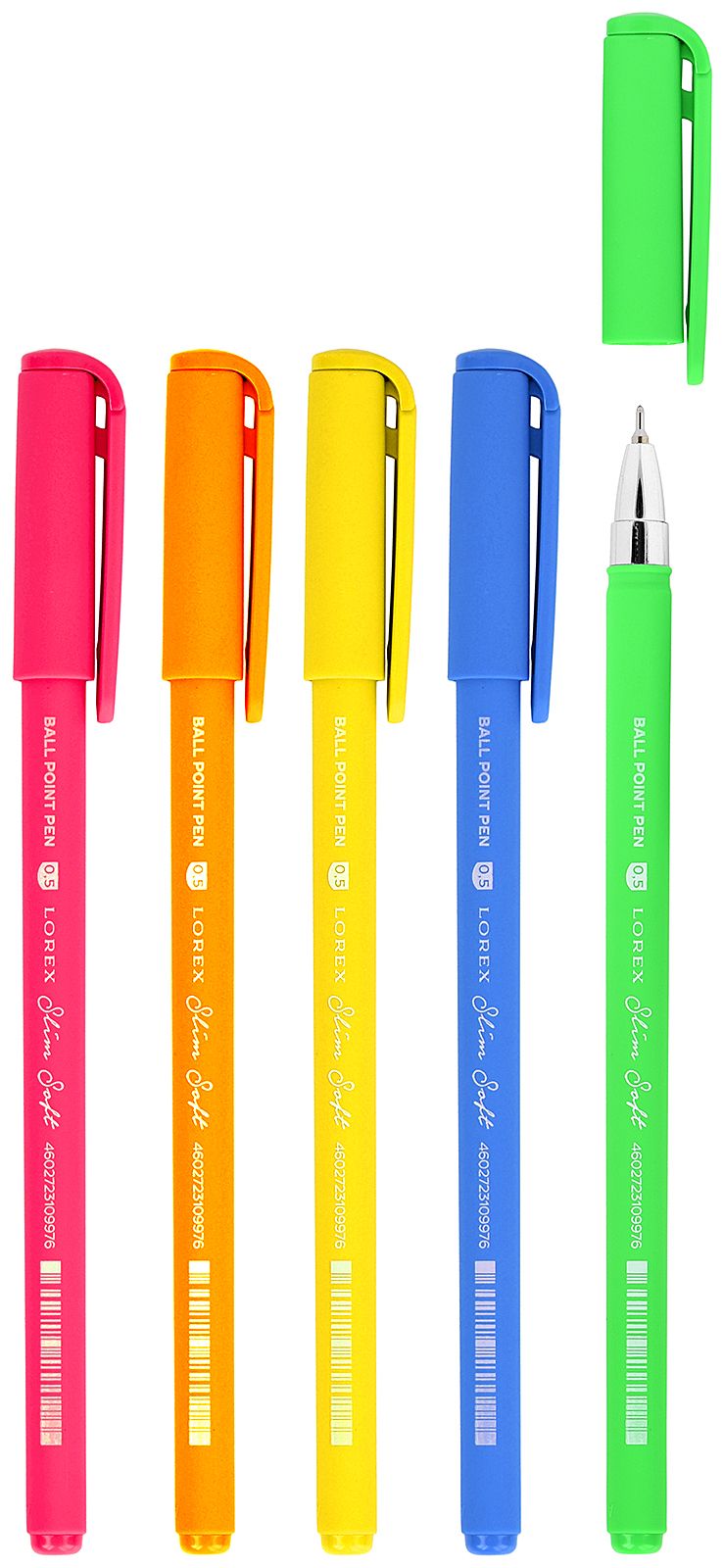 Ручки серии Slim Soft — это тонкий элегантный корпус изготовленный по технологии Ultra-soft touch. Чернила на масляной основе. Пять неоновых цветов корпуса. Игловидный пишущий узел диаметром 0,5 мм. Длина стержня — 140 мм.