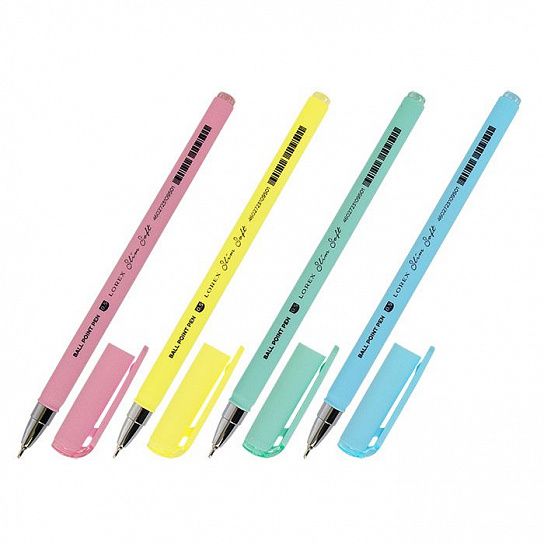 Ручки серии Slim Soft — это тонкий элегантный корпус изготовленный по технологии Ultra-soft touch. Чернила на масляной основе. Четыре пастельных цвета корпуса. Игловидный пишущий узел диаметром 0,5 мм. Длина стержня — 140 мм.