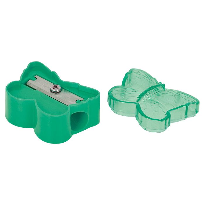 Милые и нежные бабочки от Creativiki сразу заберут ваше внимание. Трогательный и симпатичный дизайн точилки прекрасно сочетается с прочным пластиком и острыми лезвиями. Нержавеющие лезвия спрятаны под плотной полупрозрачной крышечкой, повторяющую форму бабочки.Необычная форма и удобный размер комфортно вмещается в любой пенал.
