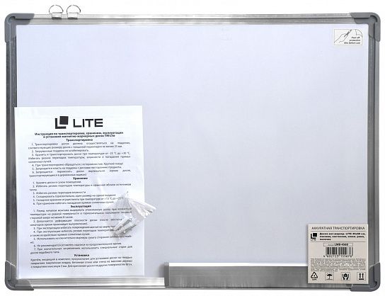 Доска магнитно-маркерная LITE крепится на стену. Поверхность доски изготовлена из металлического листа с покрытием, специально разработанным для написания маркерами для досок. Металлическая подложка маркерной доски обеспечивает магнитные свойства, которые позволяют закреплять на ней информацию с помощью магнитов. Так же на магнитно-маркерную поверхность можно выводить изображение с проектора.