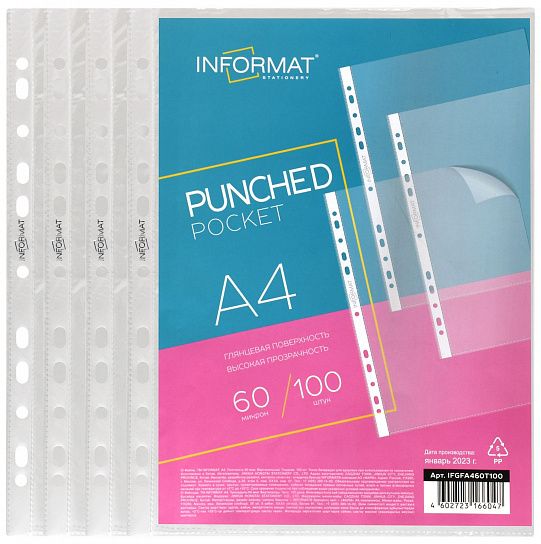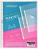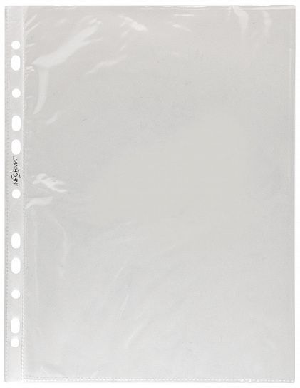Файлы-вкладыши формата А4 из плотной прозрачной полипропиленовой пленки с гладкой фактурой, толщиной 60 мкм. Предназначены для хранения и защиты документов. Каждый файл-вкладыш вмещает около 50 листов бумаги стандартной плотности. Боковая универсальная перфорация (4 отверстия), подходит для разных типов скоросшивателей.