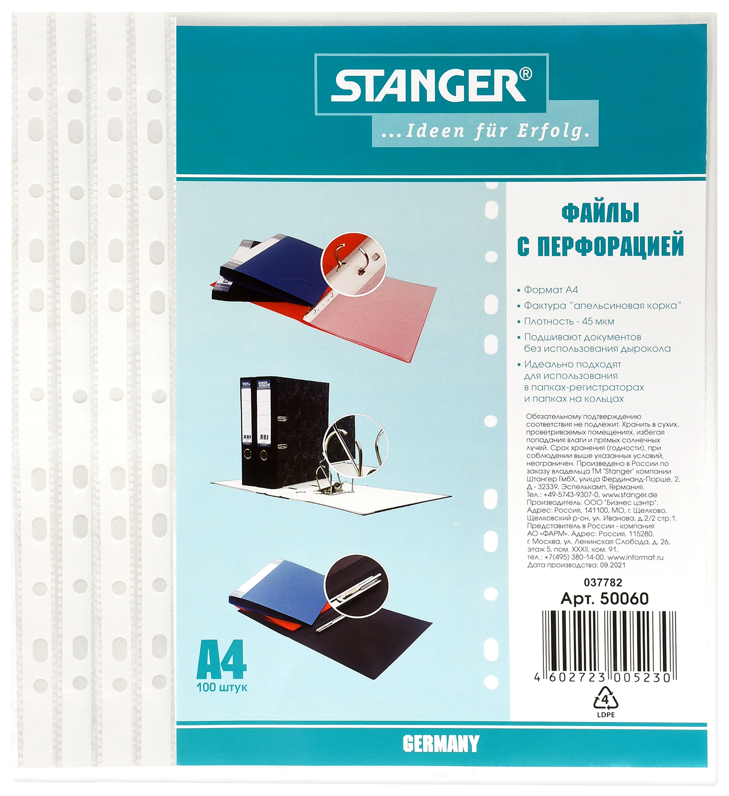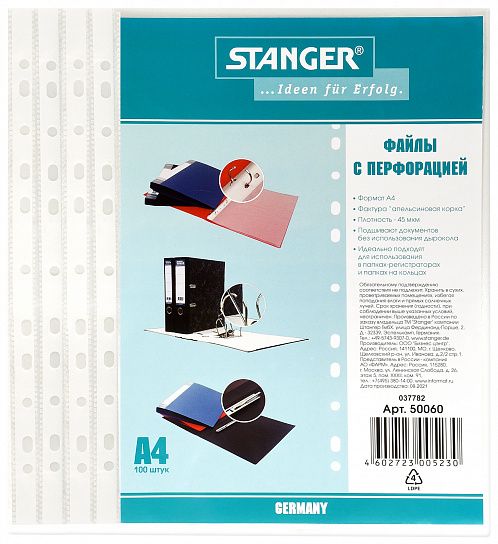 Файлы-вкладыши формата А4 из матовой полипропиленовой пленки с фактурой "апельсиновая корка" плотностью 45 мкм. Предназначены для хранения и защиты документов. Каждый файл-вкладыш вмещает около 50 листов стандартной плотности. Боковая перфорация подходит для разных типов скоросшивателей.