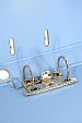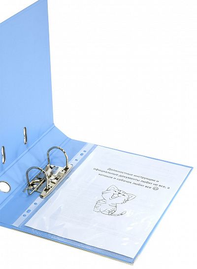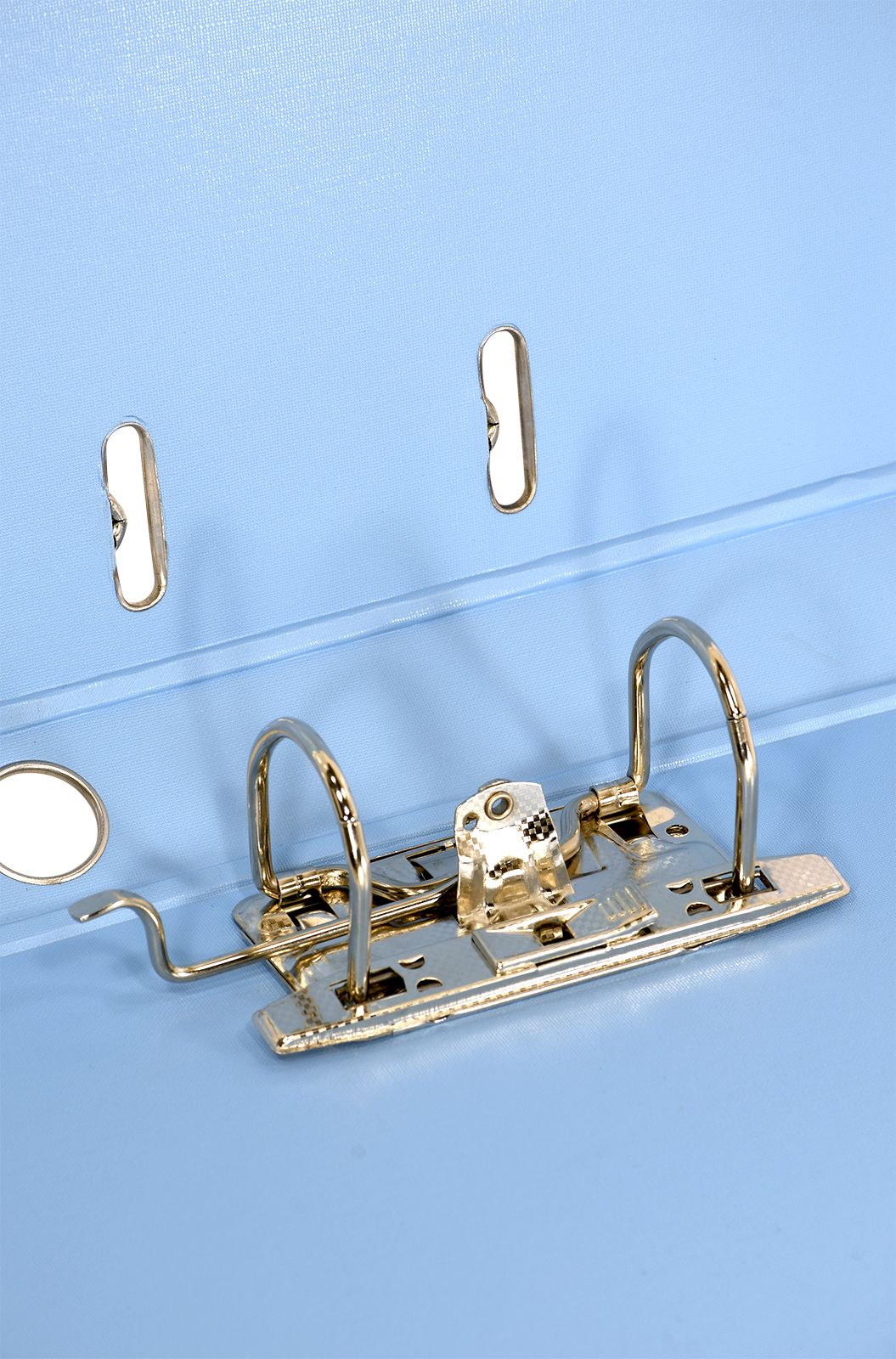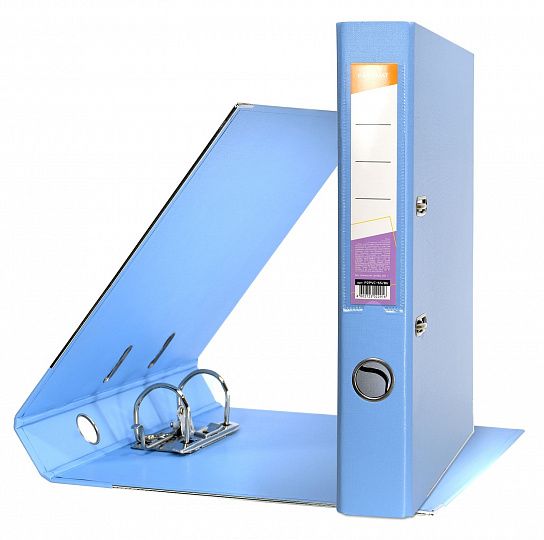 Папка-регистратор формата A4 изготовлена из качественного картона, покрытого с двух сторон покрытием PVC. Нижний край папки защищен металлическим кантом, предохраняющим ее от износа. Металлический арочный механизм съемный. На корешке папки имеется карман со сменной этикеткой для маркировки и кольцо для удобства захвата. Прорези на крышке папки удерживают ее, даже при большом количестве документов.