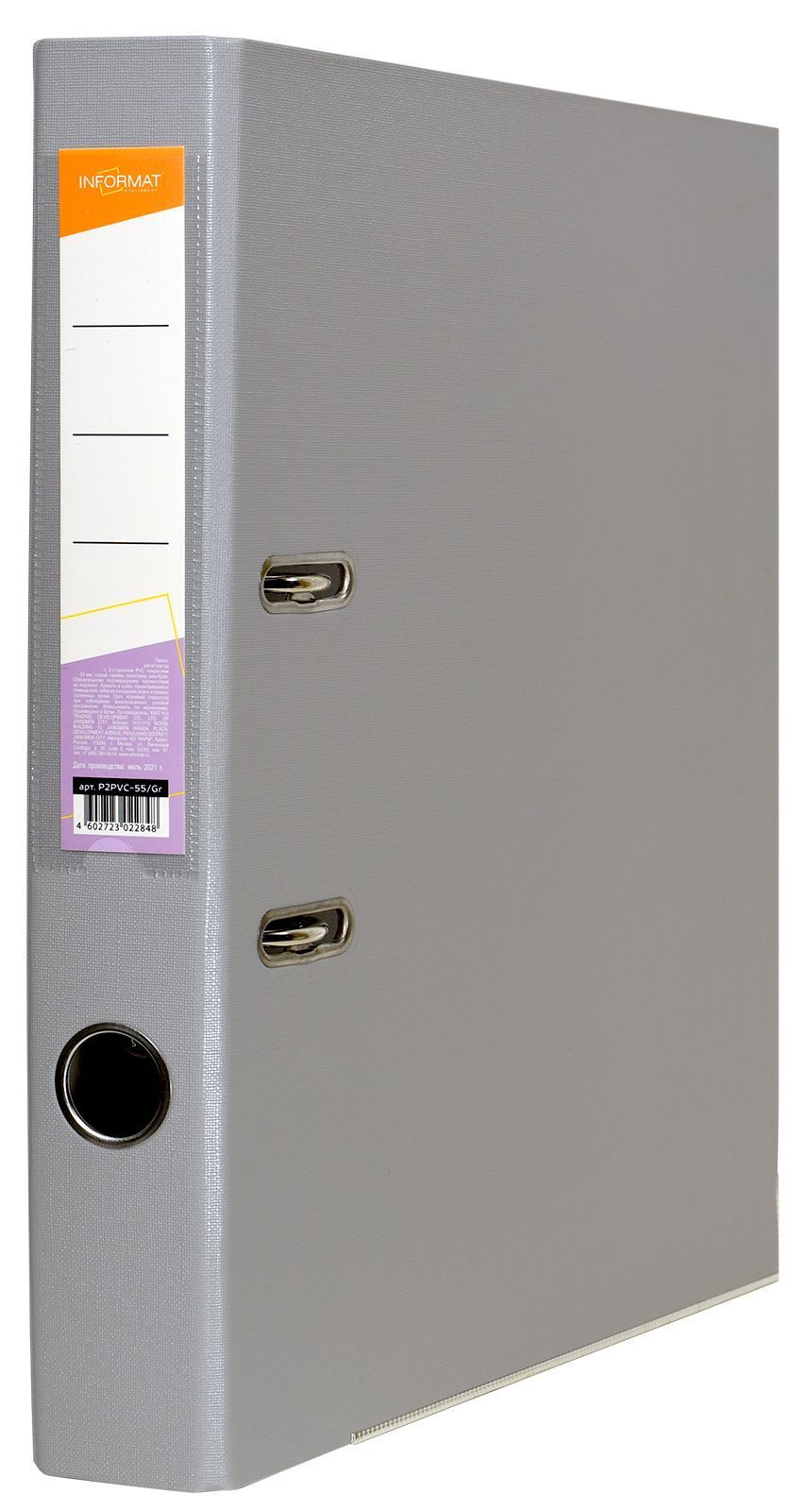 Папка-регистратор формата A4 изготовлена из качественного картона, покрытого с двух сторон покрытием PVC. Нижний край папки защищен металлическим кантом, предохраняющим ее от износа. Металлический арочный механизм съемный. На корешке папки имеется карман со сменной этикеткой для маркировки и кольцо для удобства захвата. Прорези на крышке папки удерживают ее, даже при большом количестве документов.