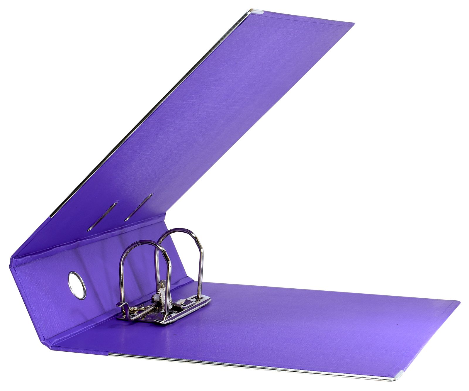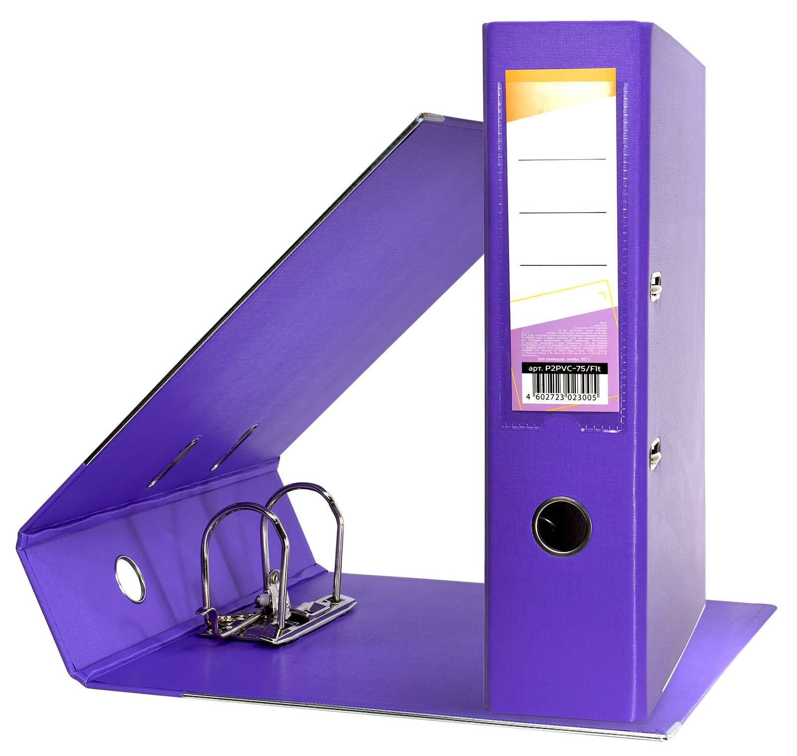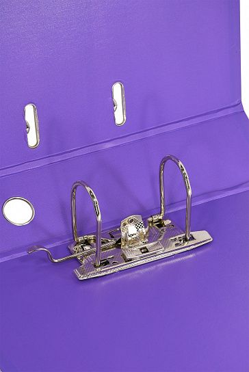 Папка-регистратор формата A4 изготовлена из качественного картона, покрытого с двух сторон покрытием PVC. Нижний край папки защищен металлическим кантом, предохраняющим ее от износа. Металлический арочный механизм съемный. На корешке папки имеется карман со сменной этикеткой для маркировки и кольцо для удобства захвата. Прорези на крышке папки удерживают ее, даже при большом количестве документов.