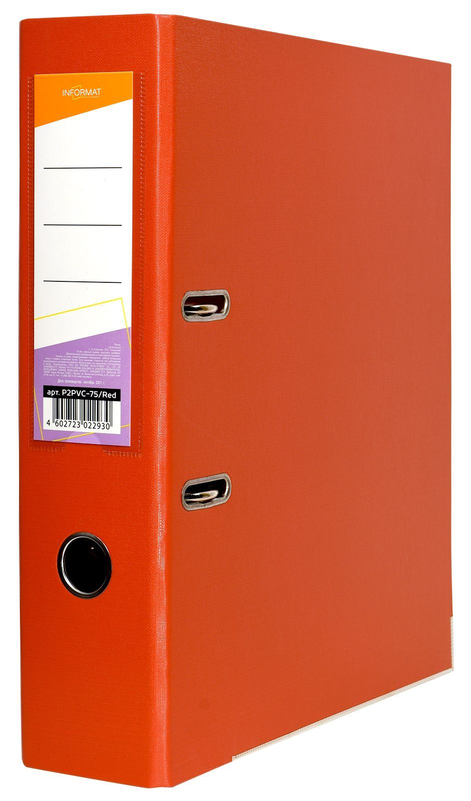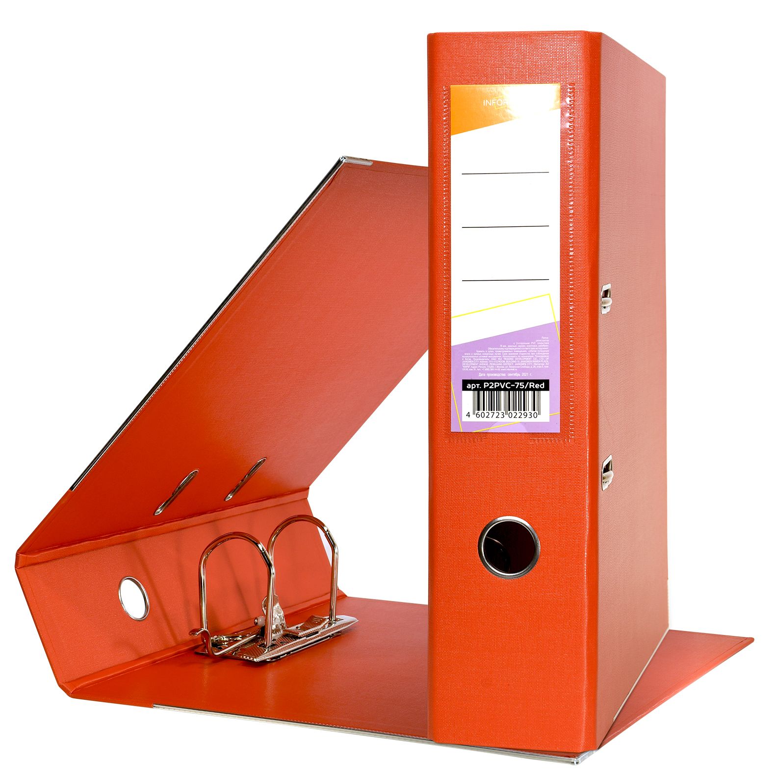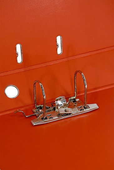 Папка-регистратор формата A4 изготовлена из качественного картона, покрытого с двух сторон покрытием PVC. Нижний край папки защищен металлическим кантом, предохраняющим ее от износа. Металлический арочный механизм съемный. На корешке папки имеется карман со сменной этикеткой для маркировки и кольцо для удобства захвата. Прорези на крышке папки удерживают ее, даже при большом количестве документов.