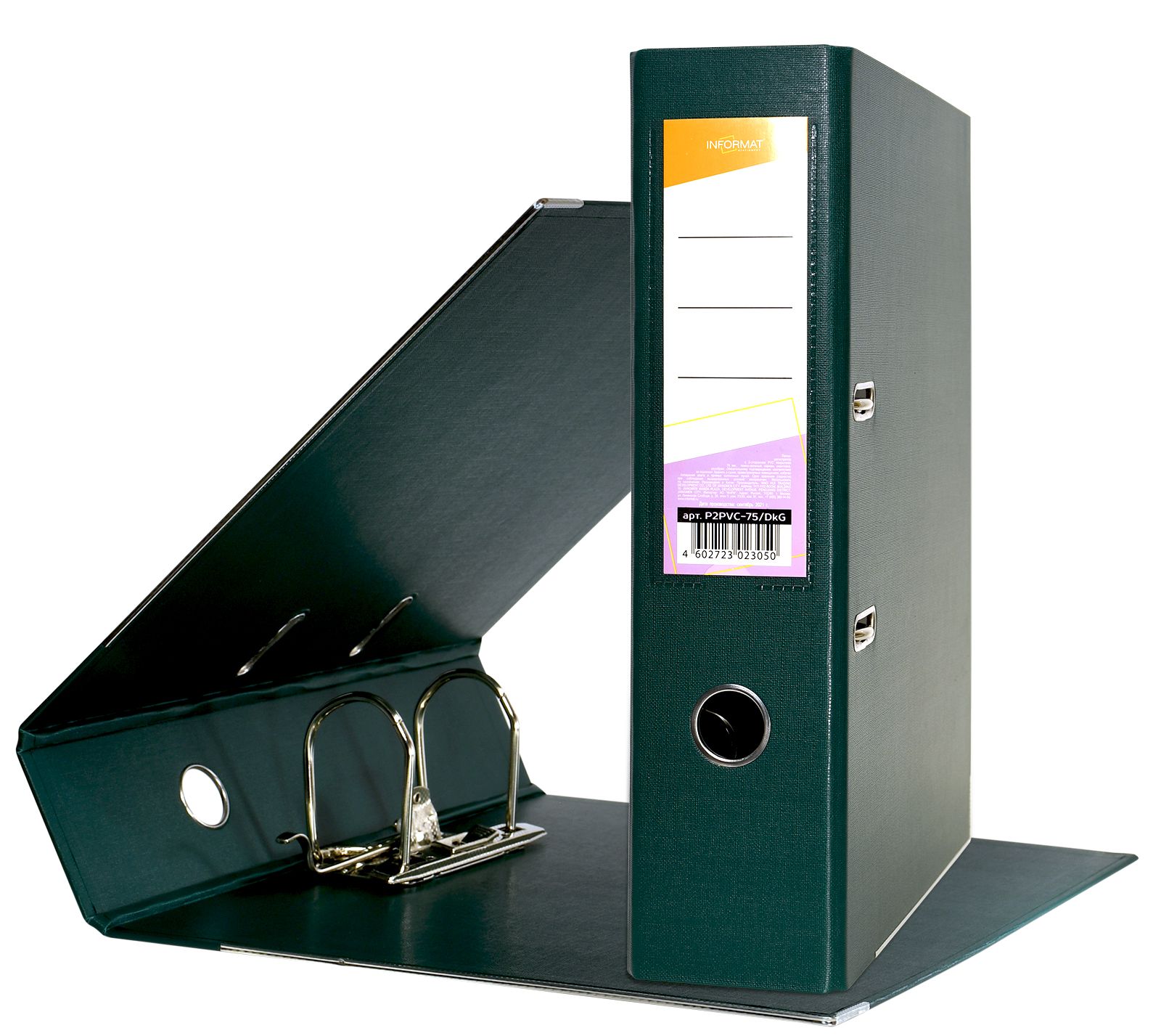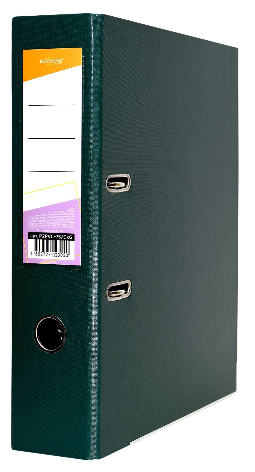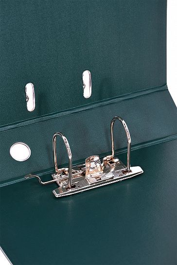 Папка-регистратор формата A4 изготовлена из качественного картона, покрытого с двух сторон покрытием PVC. Нижний край папки защищен металлическим кантом, предохраняющим ее от износа. Металлический арочный механизм съемный. На корешке папки имеется карман со сменной этикеткой для маркировки и кольцо для удобства захвата. Прорези на крышке папки удерживают ее, даже при большом количестве документов.