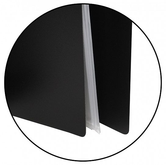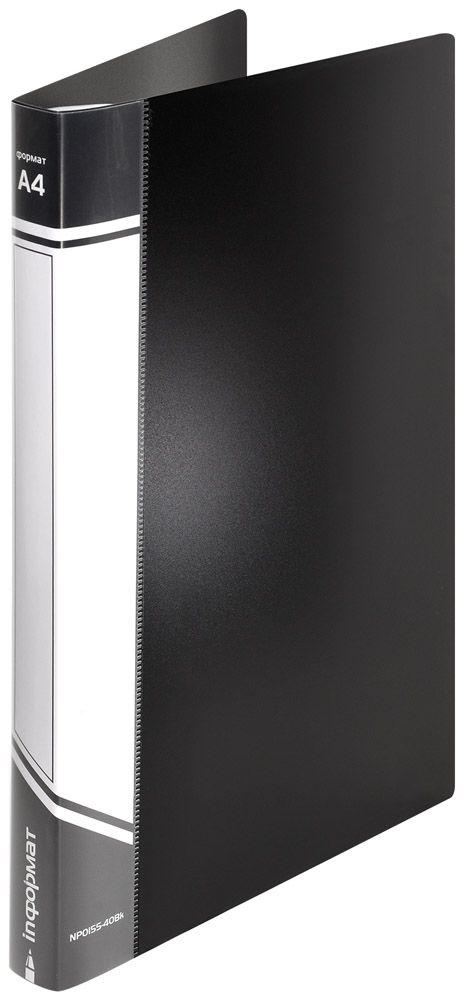 Прочная папка формата A4 из высококачественного пластика с прозрачными карманами-файлами. Внутренние файлы плотно закреплены в корешке папки. Имеет прозрачный карман с вкладышем для маркировки. Толщина пластика — 600 мкм, 40 файлов.