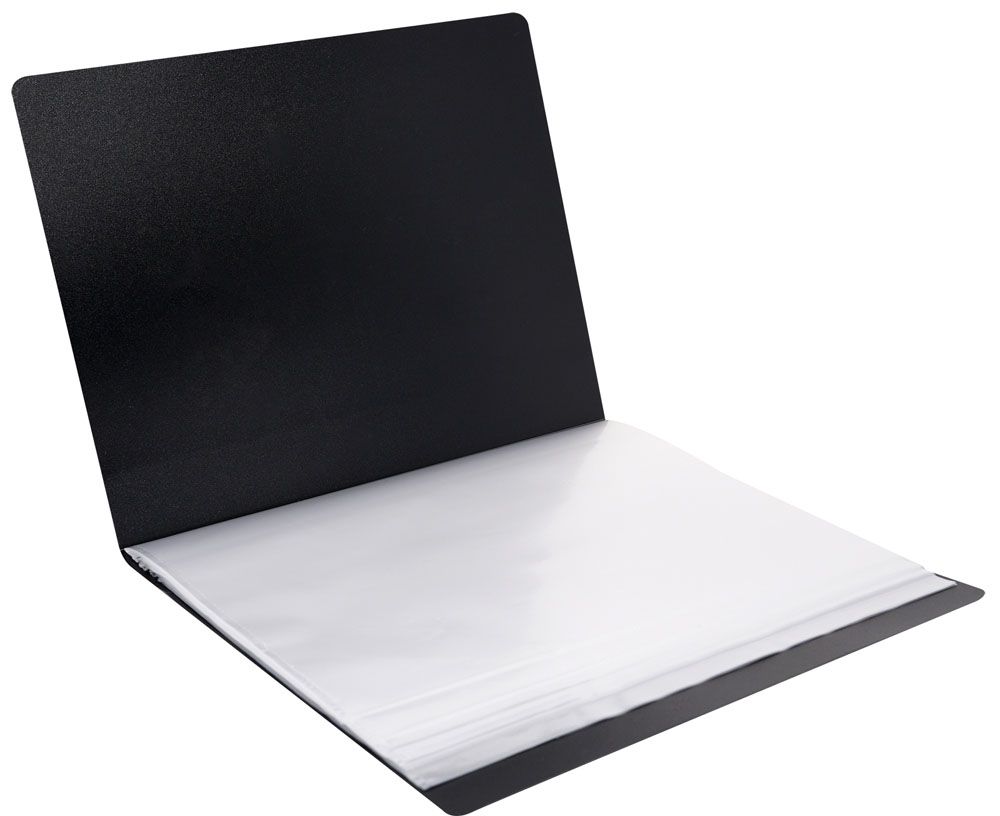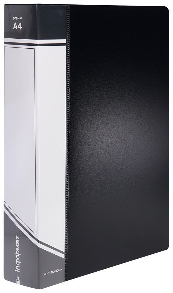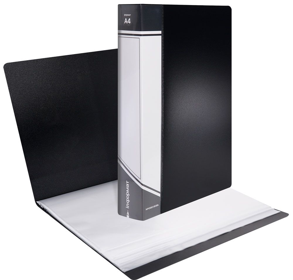 Прочная папка формата A4 из высококачественного пластика с прозрачными карманами-файлами. Внутренние файлы плотно закреплены в корешке папки. Имеет прозрачный карман с вкладышем для маркировки. Толщина пластика — 800 мкм, 80 файлов.