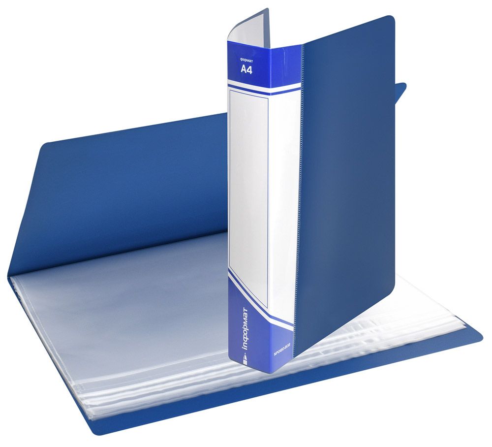 Прочная папка формата A4 из высококачественного пластика с прозрачными карманами-файлами. Внутренние файлы плотно закреплены в корешке папки. Имеет прозрачный карман с вкладышем для маркировки. Толщина пластика — 800 мкм, 80 файлов.