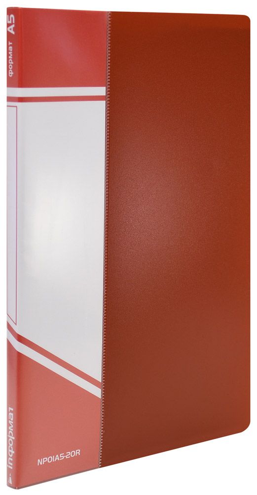 Папка формата А5 из высококачественного пластика с прозрачными карманами-файлами. Толщина пластика: 0,55 (550 мкм) — 20 файлов . Внутренние файлы плотно закреплены в корешке папки. Имеет прозрачный карман с вкладышем для маркировки. Используется для хранения часто используемых документов, прайс листов, расчетов, рисунков и т.п.
