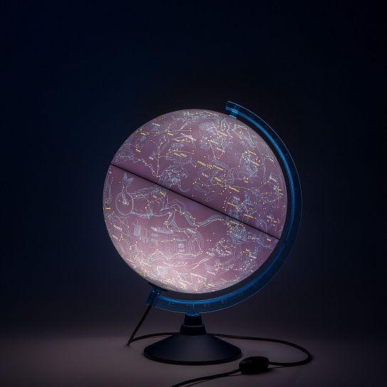 Диаметр глобуса: 21 см. Высота на подставке: 30 см. Подсветка работает от сети. Материал: пластик. Соответствует требованиям безопасности продукции. Для детей от 3-х лет.