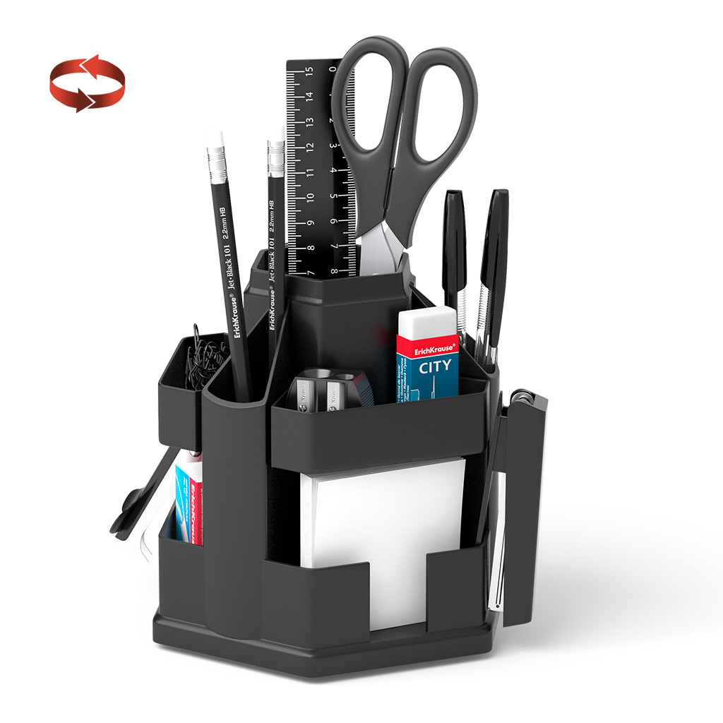 Набор настольный на вращающейся подставке Erich Krause OFFICE, черный.