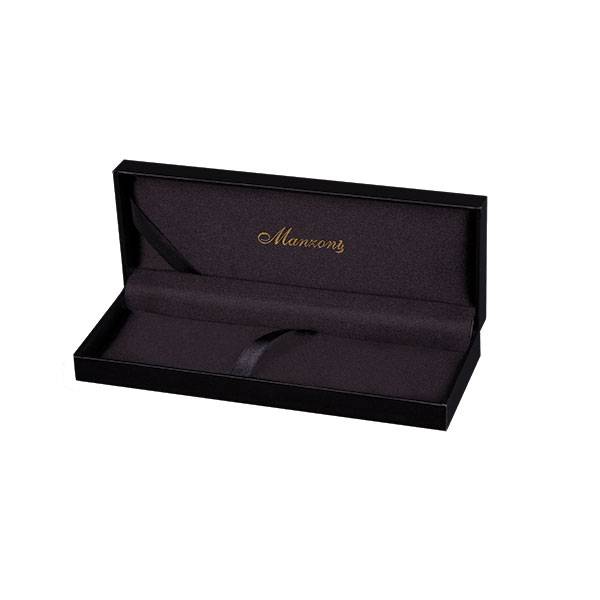Подарочный футляр на одну или две ручки. Имеет тиснение золотом "Manzoni" на внешней и внутренней стороне крышки.