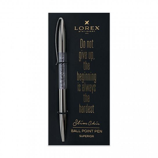 Шариковые ручки LOREX серии Slim Chic - это новое слово в индустрии подарков. Ручки с элегантным корпусом в удобной индивидуальной упаковке, аккуратно уложены в цветную коробку, которая «легким движением руки» превращается в дисплей бокс. SUPERIOR это большой выбор цветов корпуса, однотонный металлик для любителей классики.