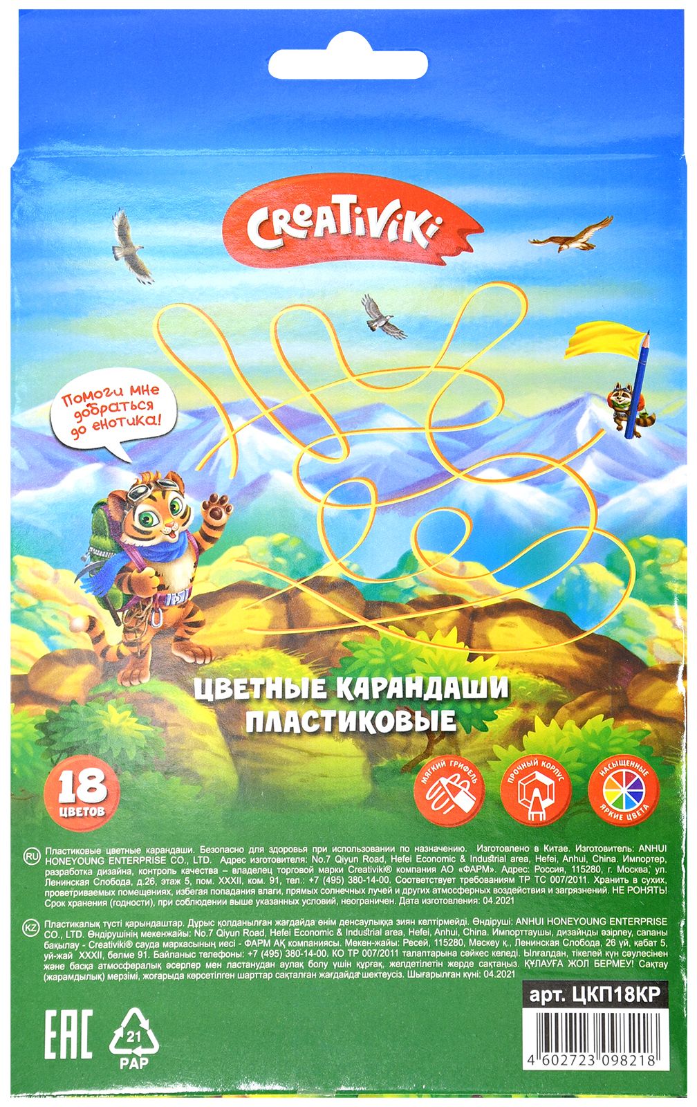 Карандаши Creativiki обладают эргономичным корпусом и мягким грифелем, обеспечивая удобство в процессе рисования и разукрашивания. Изготовлены из материалов высокого качества и являются безопасными для малышей. Яркий дизайн и широкая палитра 18 насыщенных цветов заинтересуют малыша и побудят к созданию новых шедевров!