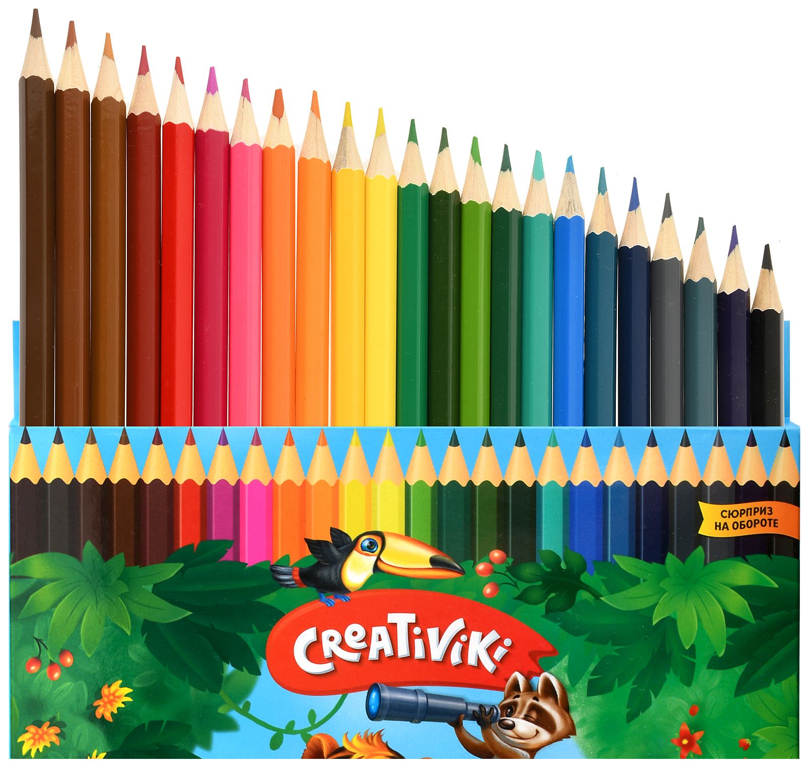 Набор цветных карандашей Creativiki — бессменный помощник в творческих свершениях юных художников. Карандаши безопасны в использовании: они изготовлены из качественной древесины и покрыты несколькими слоями специального лака, защищающего от зазубрин. Шестигранная форма не дает корпусу выскальзывать из ручки ребенка. Мягкий грифель делает процесс рисования ещё более комфортным, а рисунки — яркими и насыщенными. Несмотря на свою мягкость, грифель обладает стойкостью к ударам и крошению, а также легко затачивается.