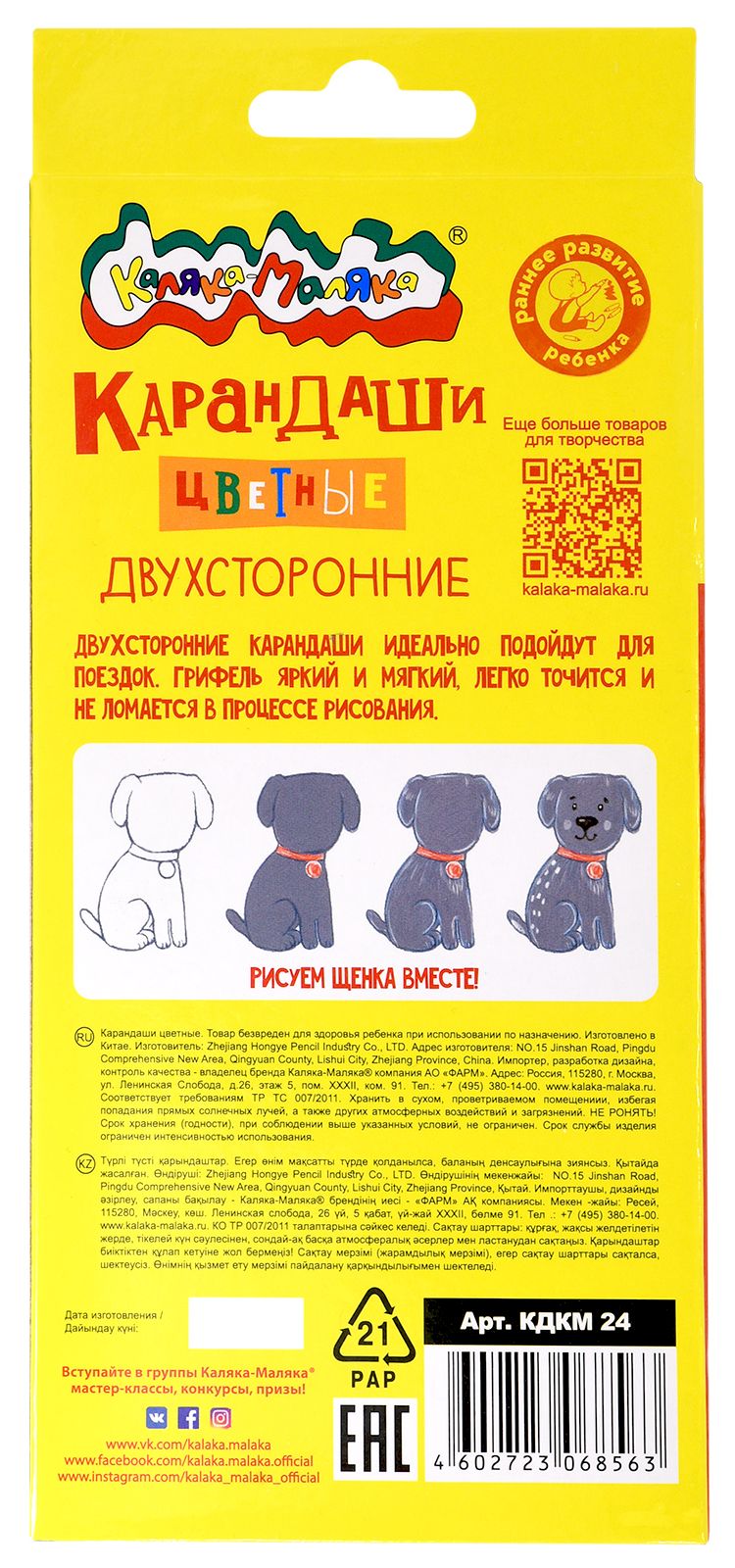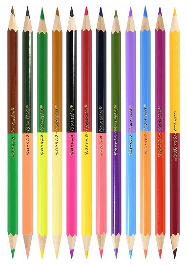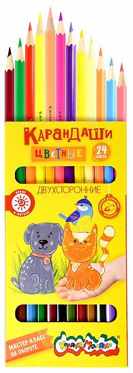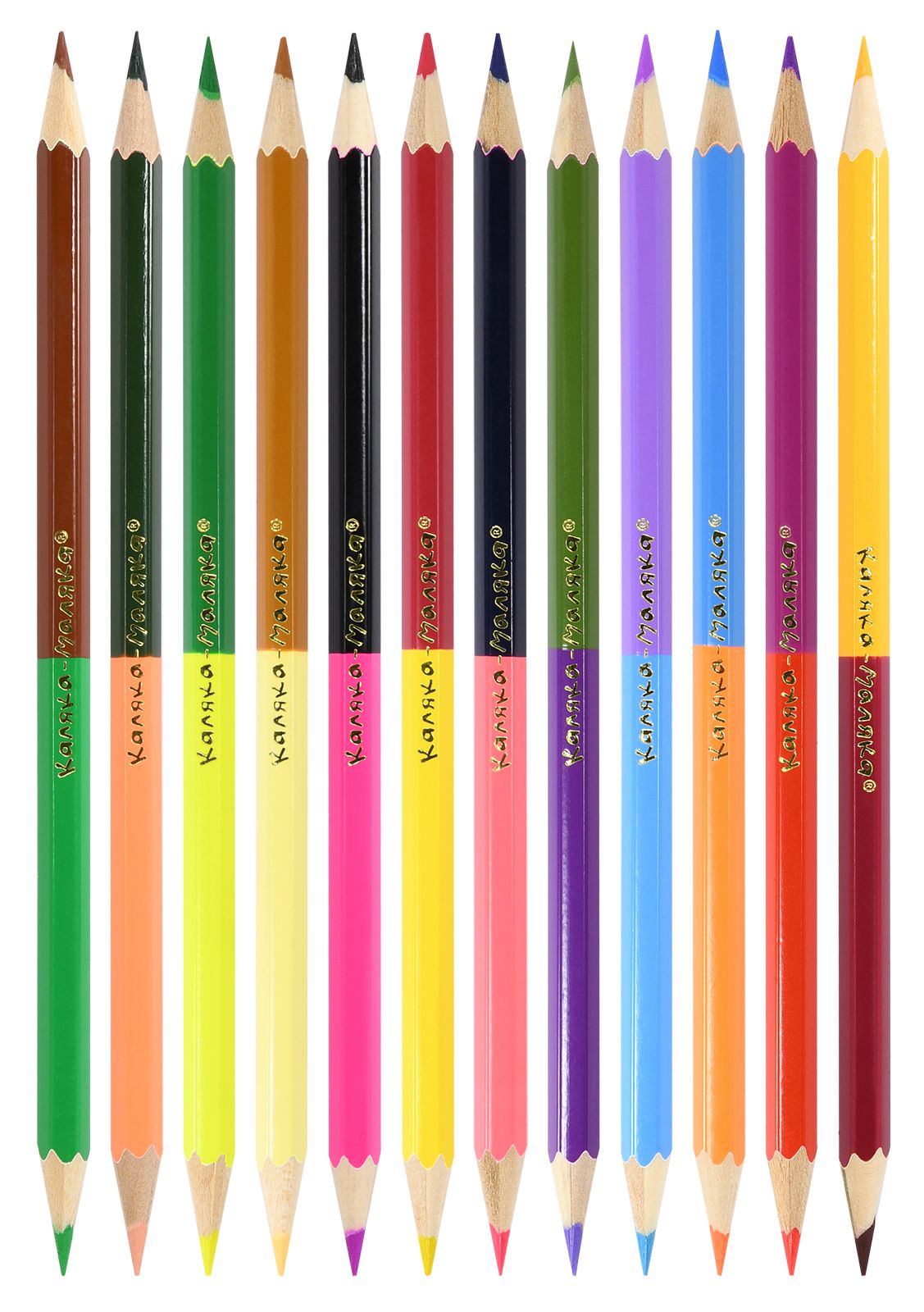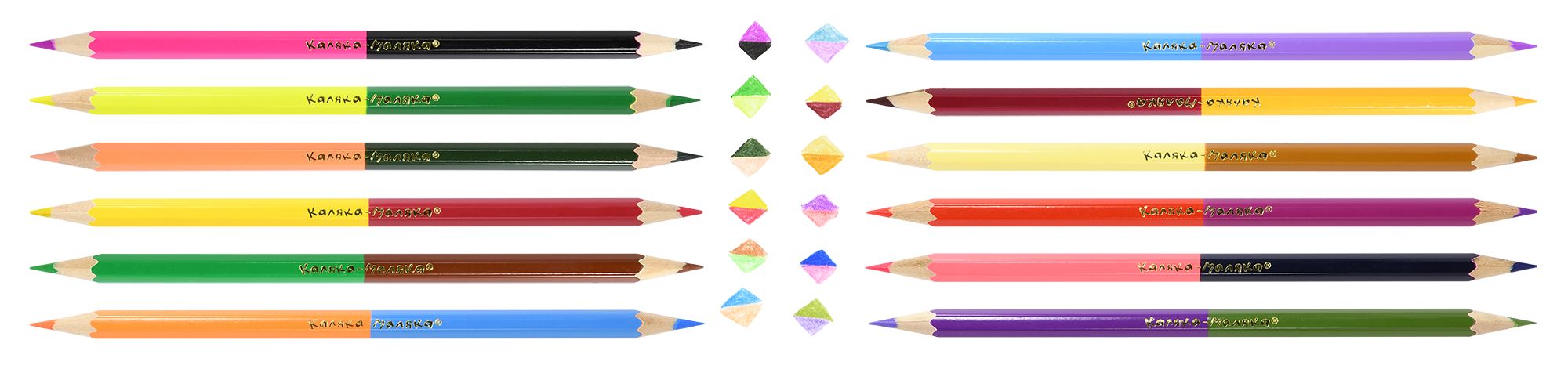 Двухсторонние карандаши — очень популярный и удобный формат! Теперь в линейке Каляка-Маляка® есть и набор 12 штук, 24 цвета! Мы обновили ключевые характеристики: увеличили диаметр грифеля, теперь он стал супермягким, добавили новые цветовые пигменты, которые делают цвета еще более яркими и сочными.