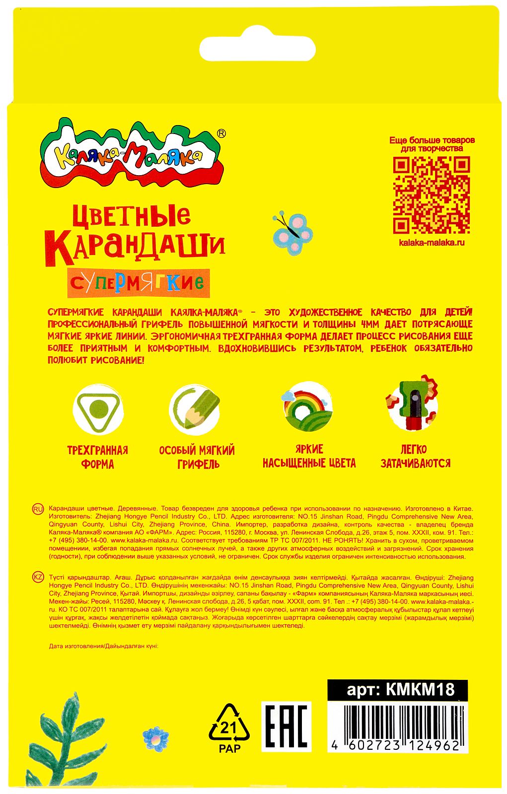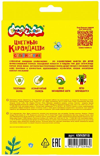 Цветные карандаши Каляка-Маляка® Премиум имеют художественное качество, а также дают возможность изображения сочных и ярких линий, обеспечивая максимально комфортное рисование.