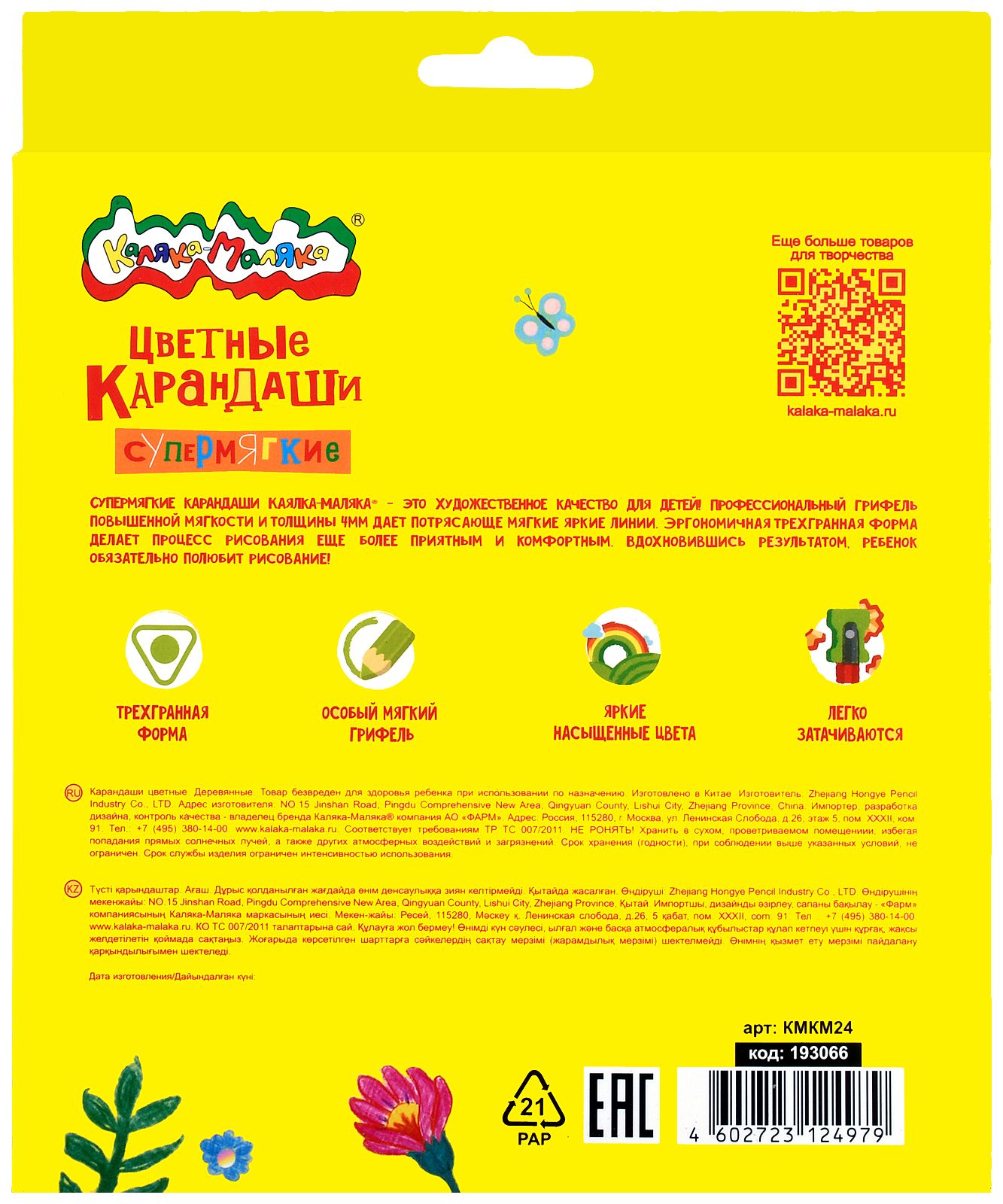 Цветные карандаши Каляка-Маляка® Премиум имеют художественное качество, а также дают возможность изображения сочных и ярких линий, обеспечивая максимально комфортное рисование.