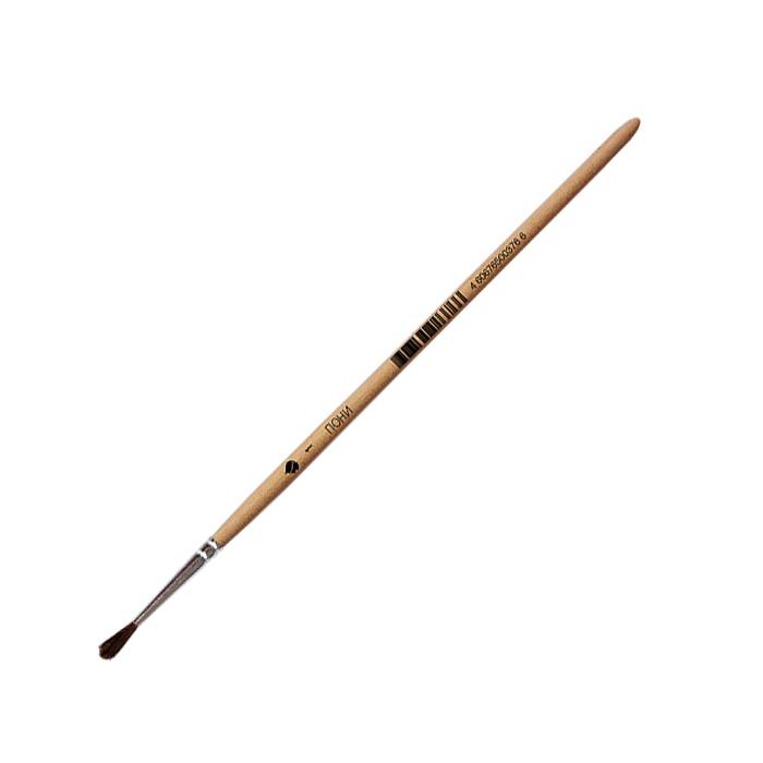 Кисть из волоса пони хорошо впитывает и отдает краску. Удовлетворительно собирается в конус, держит форму, но не достаточно упруга. Волос относится к оформительской группе, т.е. не имеет острой вершинки, в конус собирается за счет формы рабочей части. Волос пони бывает черного и коричневого цвета.