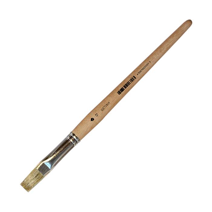 Основной показатель, по которому оцениваются щетинные кисти, - упругость. Чем гуще краска, тем тверже должен быть волос. Вслед за упругостью важнейшей характеристикой является расщепленный кончик - он способствует хорошей наполняемости кисти и ровному нанесению краски. Кисть предназначена для работы с "тяжелыми" красками: маслом, акрилом, темперой, гуашью. Ручка кисти деревянная пропитанная, обойма жестяная шовная.