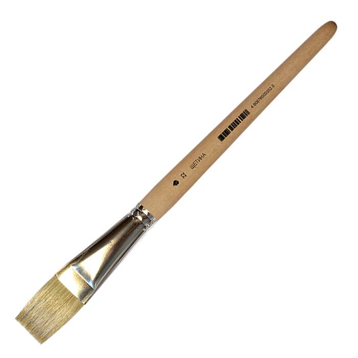 Основной показатель, по которому оцениваются щетинные кисти, - упругость. Чем гуще краска, тем тверже должен быть волос. Вслед за упругостью важнейшей характеристикой является расщепленный кончик - он способствует хорошей наполняемости кисти и ровному нанесению краски. Кисть предназначена для работы с "тяжелыми" красками: маслом, акрилом, темперой, гуашью. Ручка кисти деревянная пропитанная, обойма жестяная шовная.