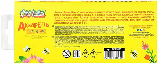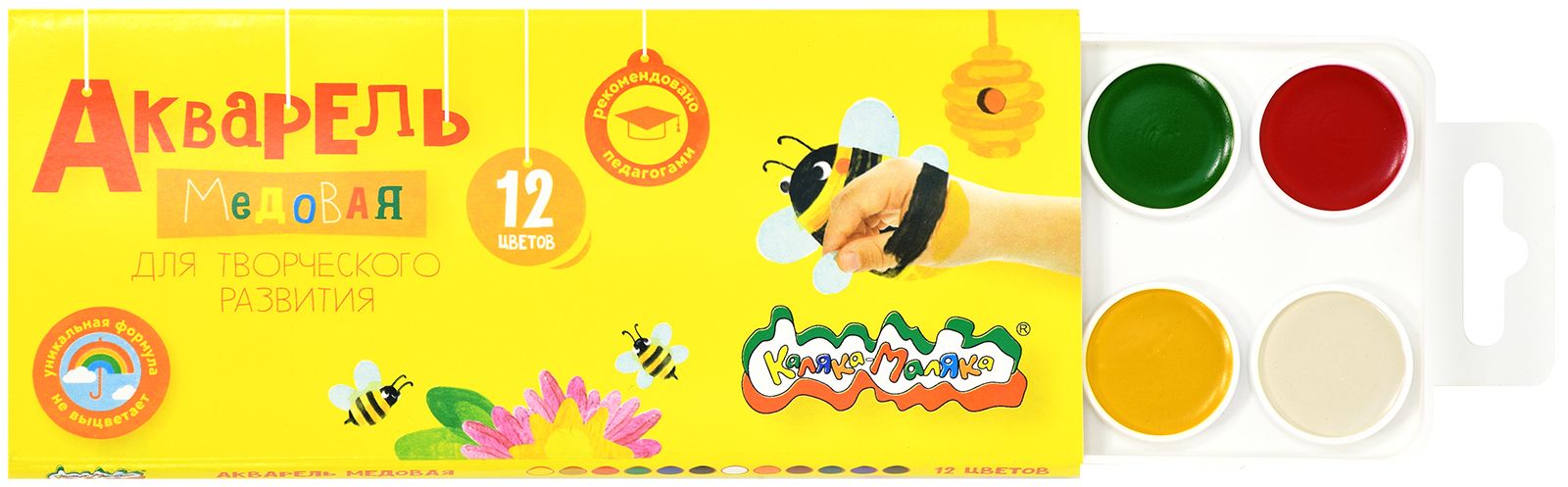 Акварель Каляка-Маляка® имеет идеально подобранную цветовую гамму, необходимую для развития творческих способностей ребенка. С ее помощью малыш учится пользоваться палитрой, определять теплые и холодные цвета.