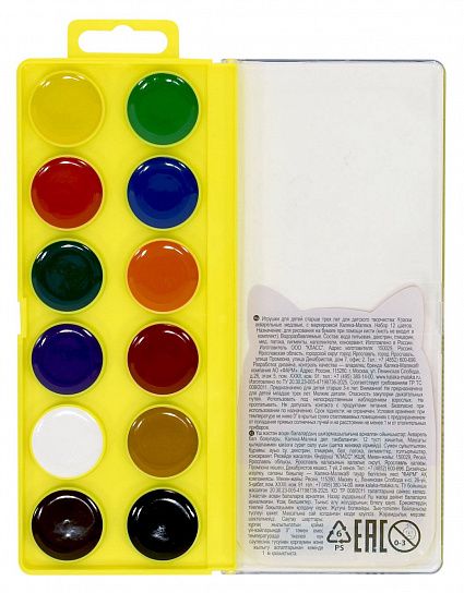 12 ярких насыщенных цветов отлично смешиваются между собой и позволяют создать множество оттенков. Краски быстро высыхают и не портятся со временем. Изготовлены на основе натуральных компонентов, не содержат токсичных веществ. Безопасны при использовании по назначению.