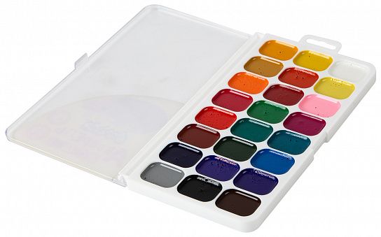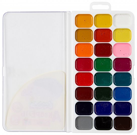 24 ярких насыщенных цвета отлично смешиваются между собой и позволяют создать множество оттенков. Краски быстро высыхают и не портятся со временем. Изготовлены на основе натуральных компонентов, не содержат токсичных веществ. Безопасны при использовании по назначению.