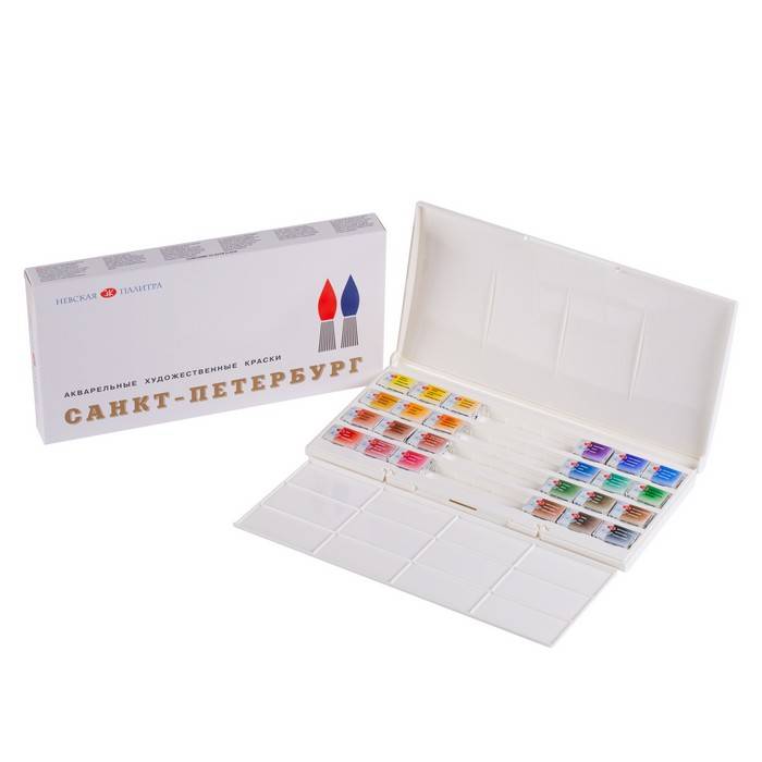 Художественные краски "Белые ночи" выпускаются в наборе "Санкт-Петербург", 24 цвета.
