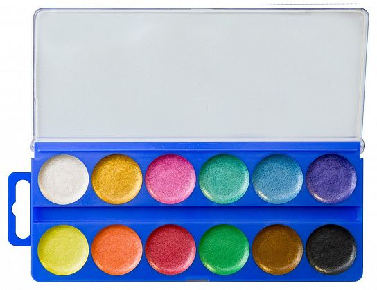 Перламутровые акварельные краски позволят разнообразить ваше творчество, сделать рисунки интересными и необычными. Краска легко смывается с рук и одежды.
