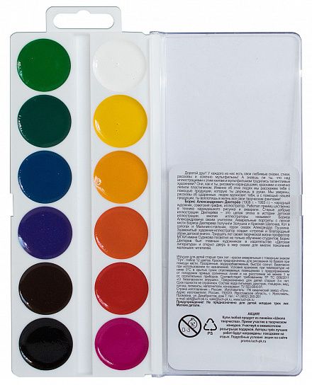 12 цветов без кисти, пластмассовая упаковка с прозрачной крышкой, европодвес.