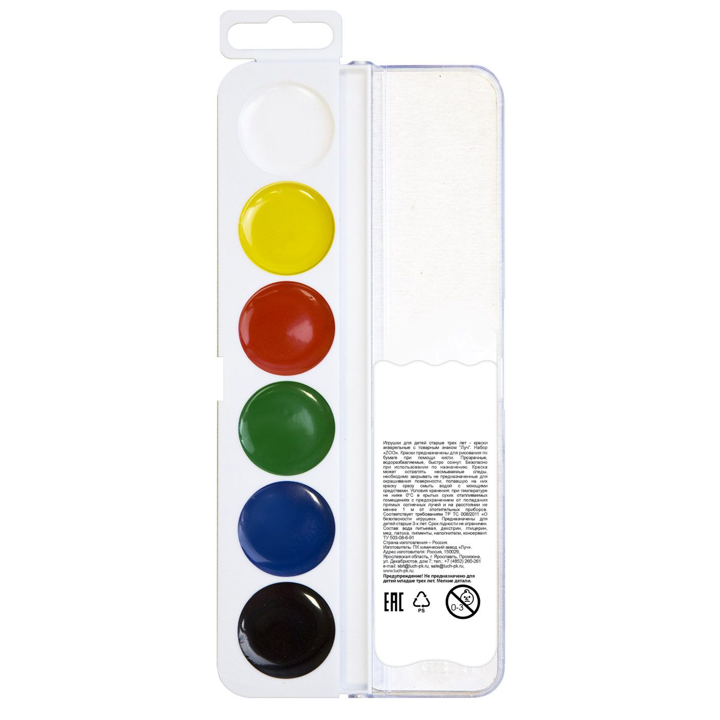 Краски акварельные серии ZOO выпускаются в картонной упаковке с пластмассовым вкладышем, без кисти. Срок годности не ограничен.