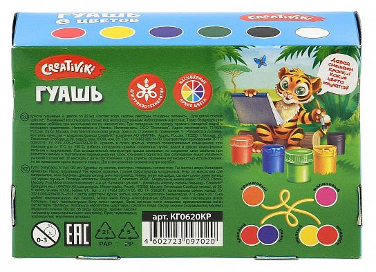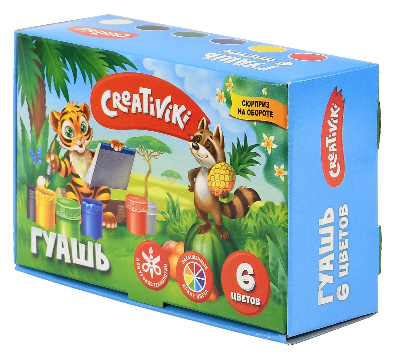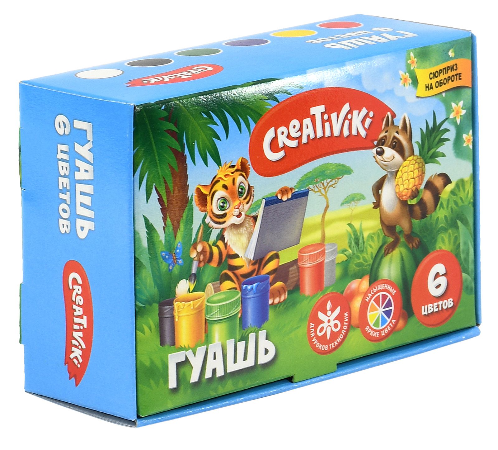 Гуашевые краски — один из любимых детских материалов для рисования. Обладая высокой пигментированностью и сочностью цветов, краски Creativiki невероятно комфортны в использовании: они обладают хорошей укрывистостью. Яркие и красивые гуашевые краски имеют самый популярный объем — 20 мл. Каждая баночка плотно закрывается завинчивающейся крышкой.