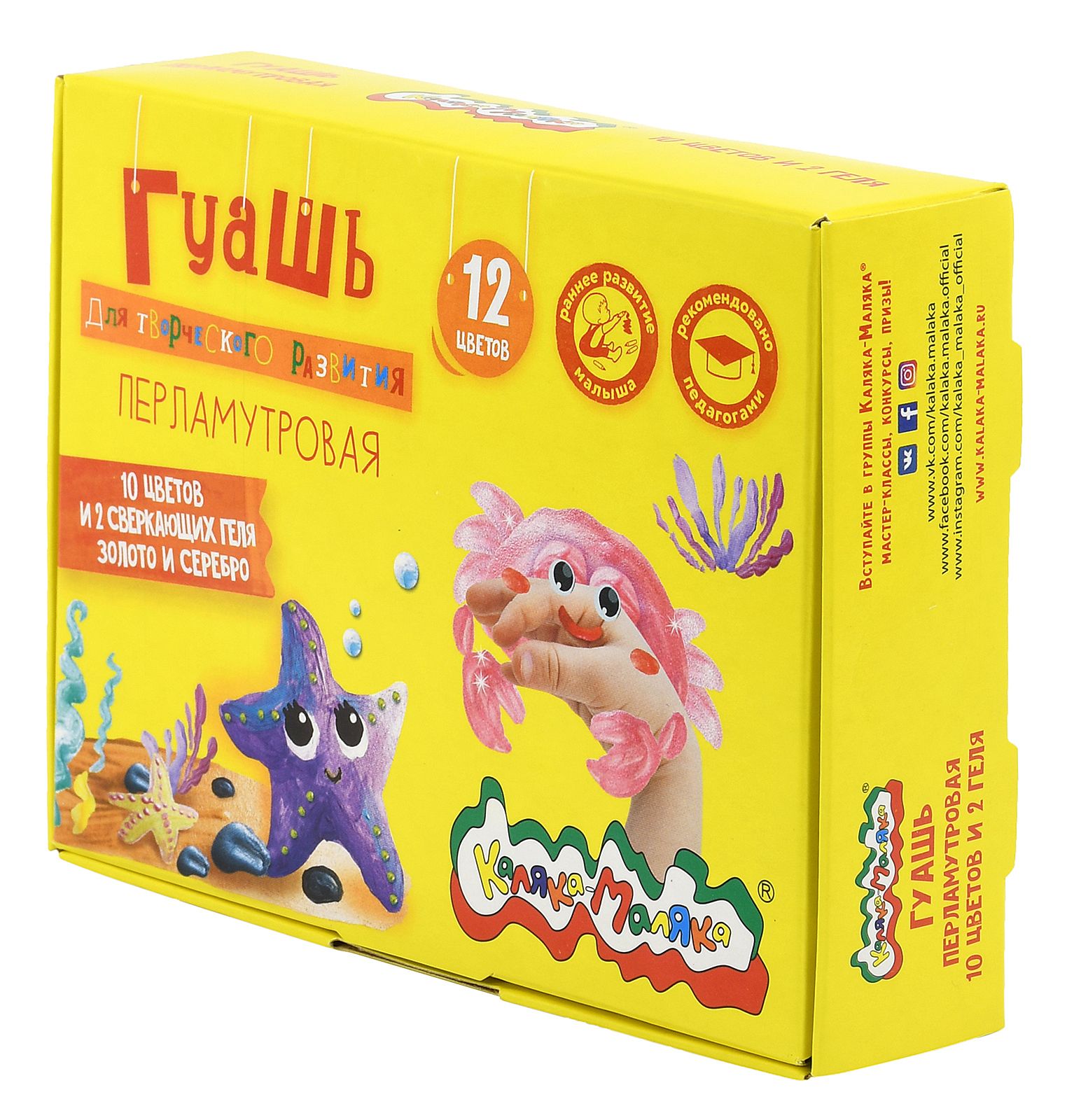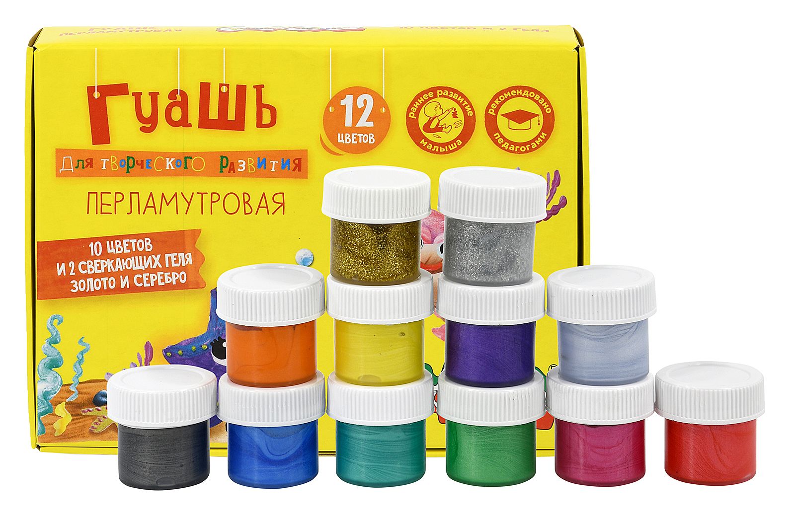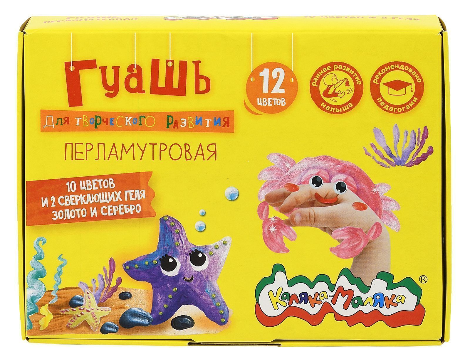 Гуашь перламутровая Каляка-Маляка® предназначена для детского творчества. Может стать прекрасным дополнением для декора картин, сделанных классической гуашью. Развивает ассоциативно-образное мышление ребенка. Набор из 10 перламутровых цветов дополнен сверкающими гелями с золотыми и серебряными блестками.