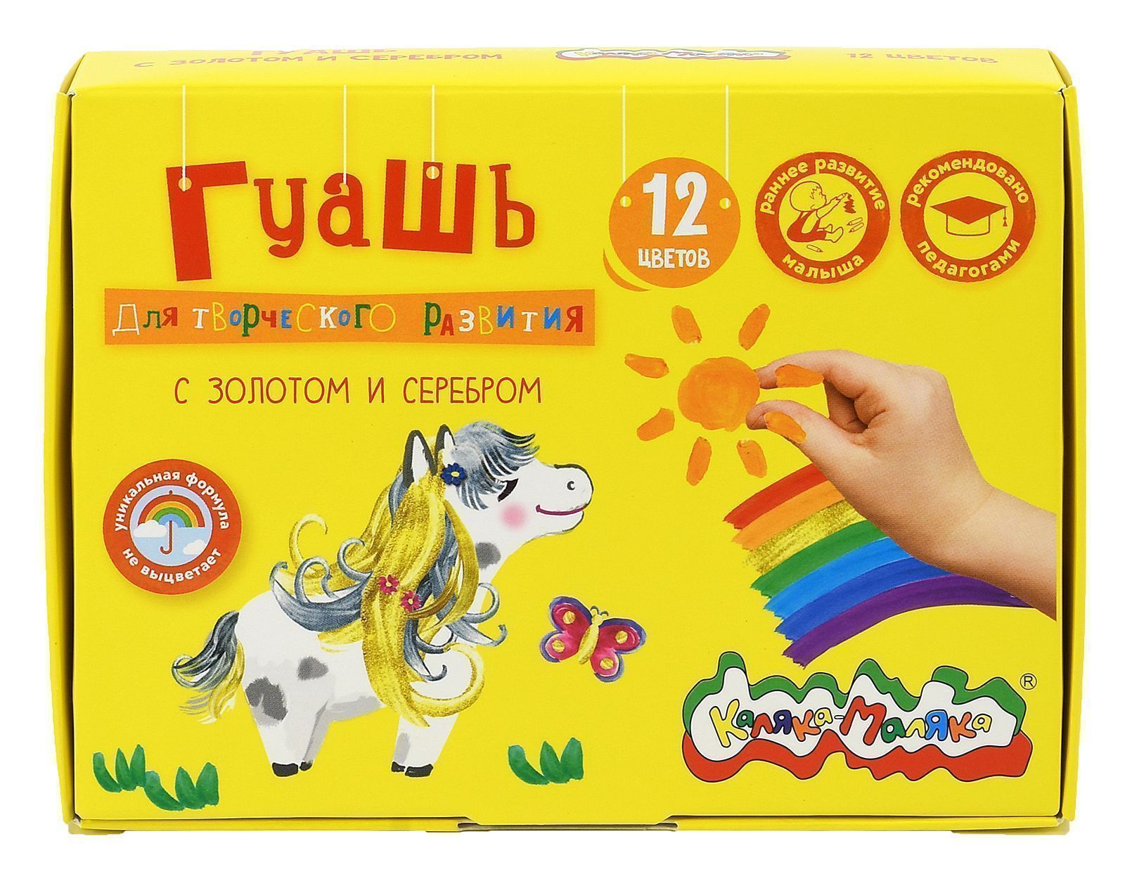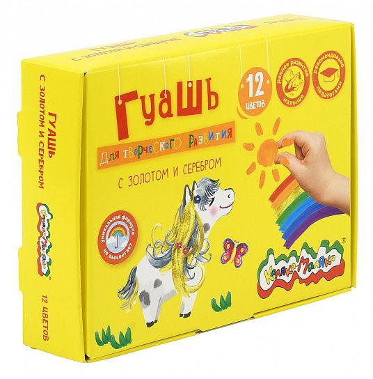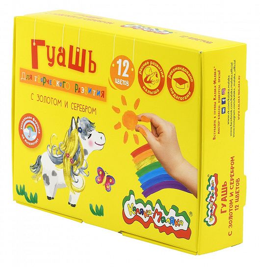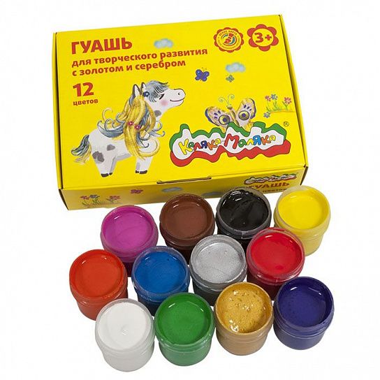 Гуашь Каляка-Маляка® предназначена для детского творчества. Отлично подходит в качестве первого материала для обучения рисованию. Имеет оптимальное цветовое сочетание, обладает хорошей насыщенностью и чистотой тона. Отличается прекрасной кроющей способностью. При необходимости разбавляется водой.