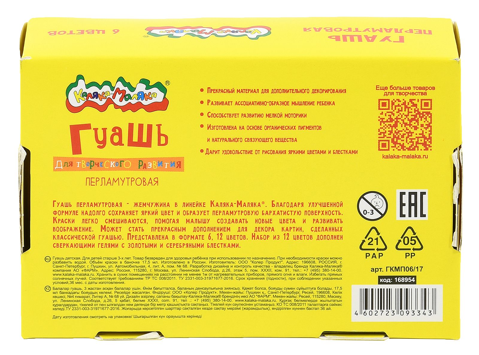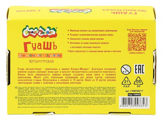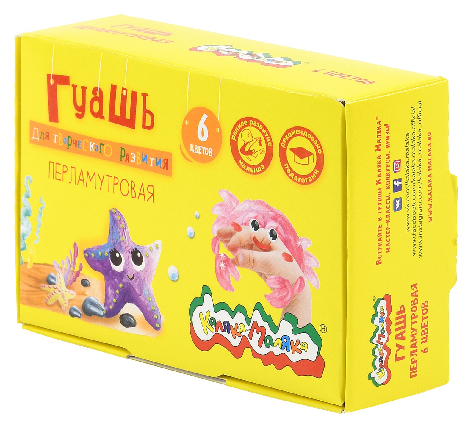 Гуашь перламутровая Каляка-Маляка® предназначена для детского творчества. Может стать прекрасным дополнением для декора картин, сделанных классической гуашью. Развивает ассоциативно-образное мышление ребенка.