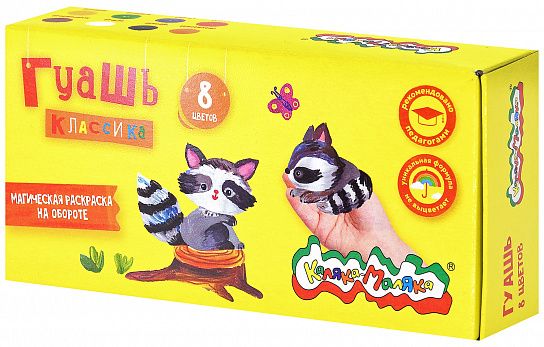Гуашь Каляка-Маляка® КЛАССИКА предназначена для детского творчества. Отлично подходит в качестве первого материала для обучения рисованию. Имеет оптимальное цветовое сочетание, обладает хорошей насыщенностью и чистотой тона. Отличается прекрасной кроющей способностью. При необходимости разбавляется водой.