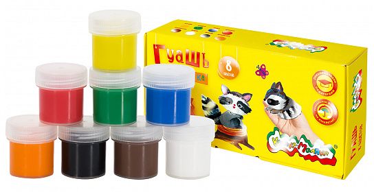 - Гуашь находится в пластиковых герметичных баночках с завинчивающейся прозрачной крышкой.