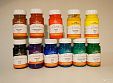 Состав наборы: белила титановые, желтая, охра светлая, красная, английская красная, фиолетовая, сине-зеленая, синяя, изумрудная, зеленая, зеленая темная, коричневая, черная.