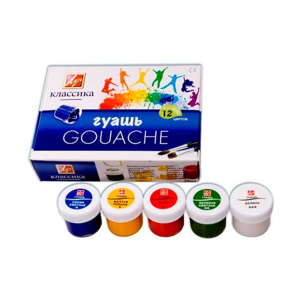 Гуашь Классика предназначена для детского творчества, выполнения художественно-декоративных, оформительских работ. Краски изготовлены на основе натуральных компонентов и высококачественных пигментов. Гуашь находится в пластмассовых, герметичных баночках с безупречно завинчивающейся крышкой (на крышке есть наклейка, которая указывает на цвет краски в баночке).