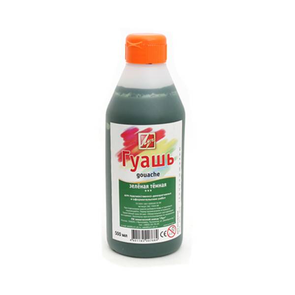 Краски изготовлены на основе натуральных компонентов и высококачественных пигментов с добавлением пищевых консервантов (не содержащих фенол). Гуашь выполнена в бутылках с большой вмещаемостью краски и предназначена для выполнения декоративно-прикладных и оформительских работ. Бутылка снабжена удобной в использовании крышкой Флип-топ с контролем дозировки краски.