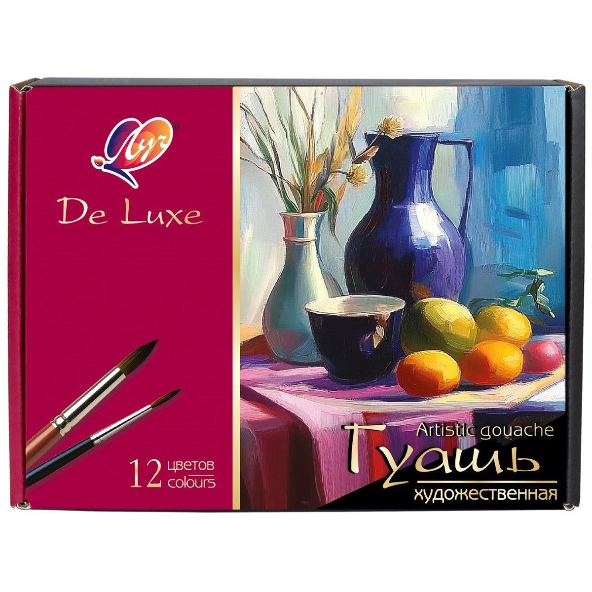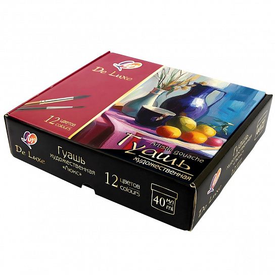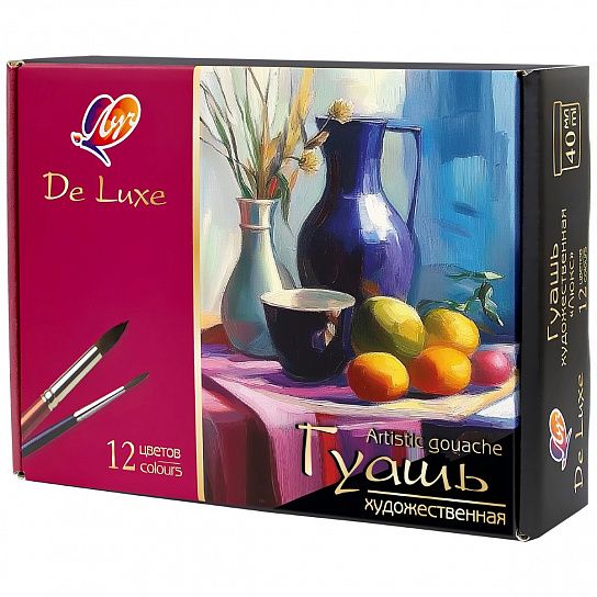 Гуашь художественная "Люкс" изготовлена на основе растительного клея-гуммиарабика и пигментов высокого класса. Сотни оттенков, разнообразие настроения, богатство эмоций и это не полный перечень того, что можно получить, работая этой краской. Фактура высохшего цвета бархатистая, приятная на ощупь.
