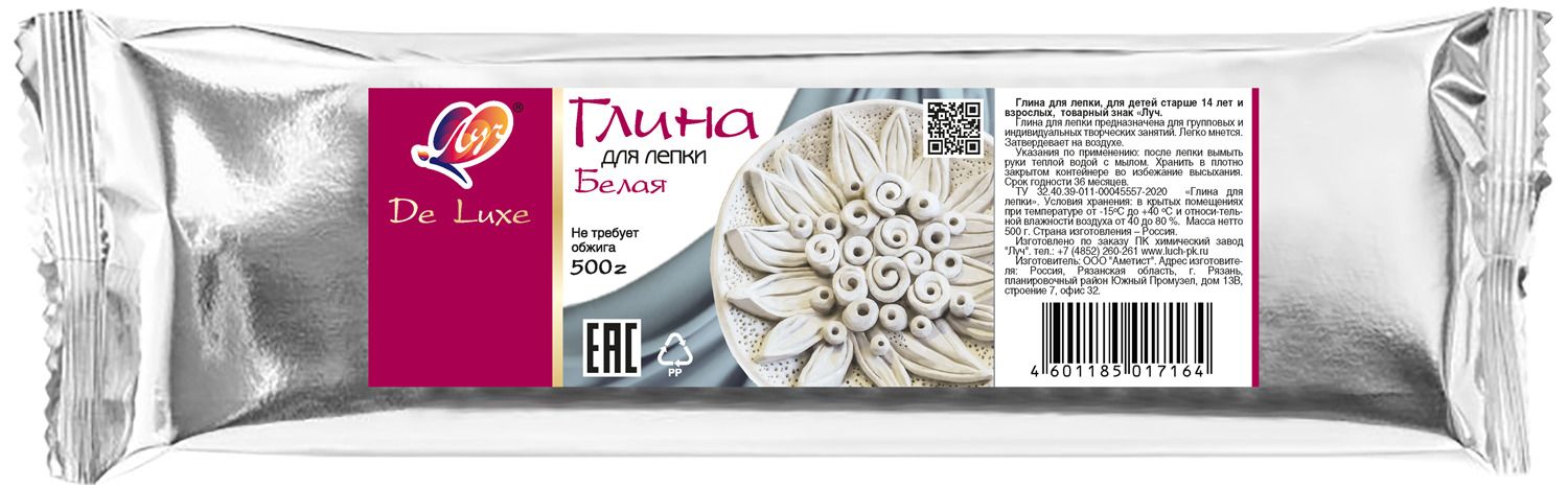 Глина для лепки Луч самозатвердевающая 500 г белая