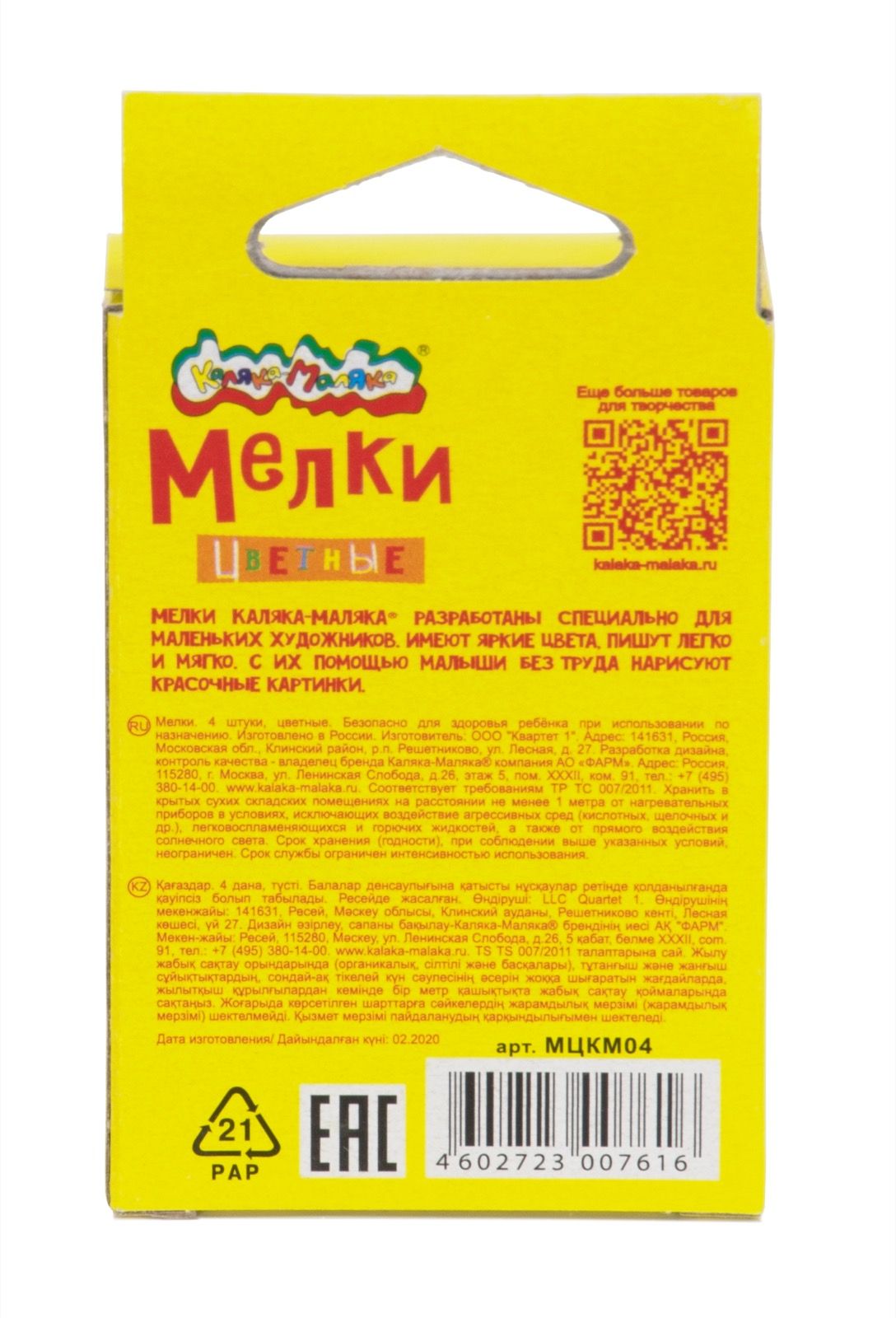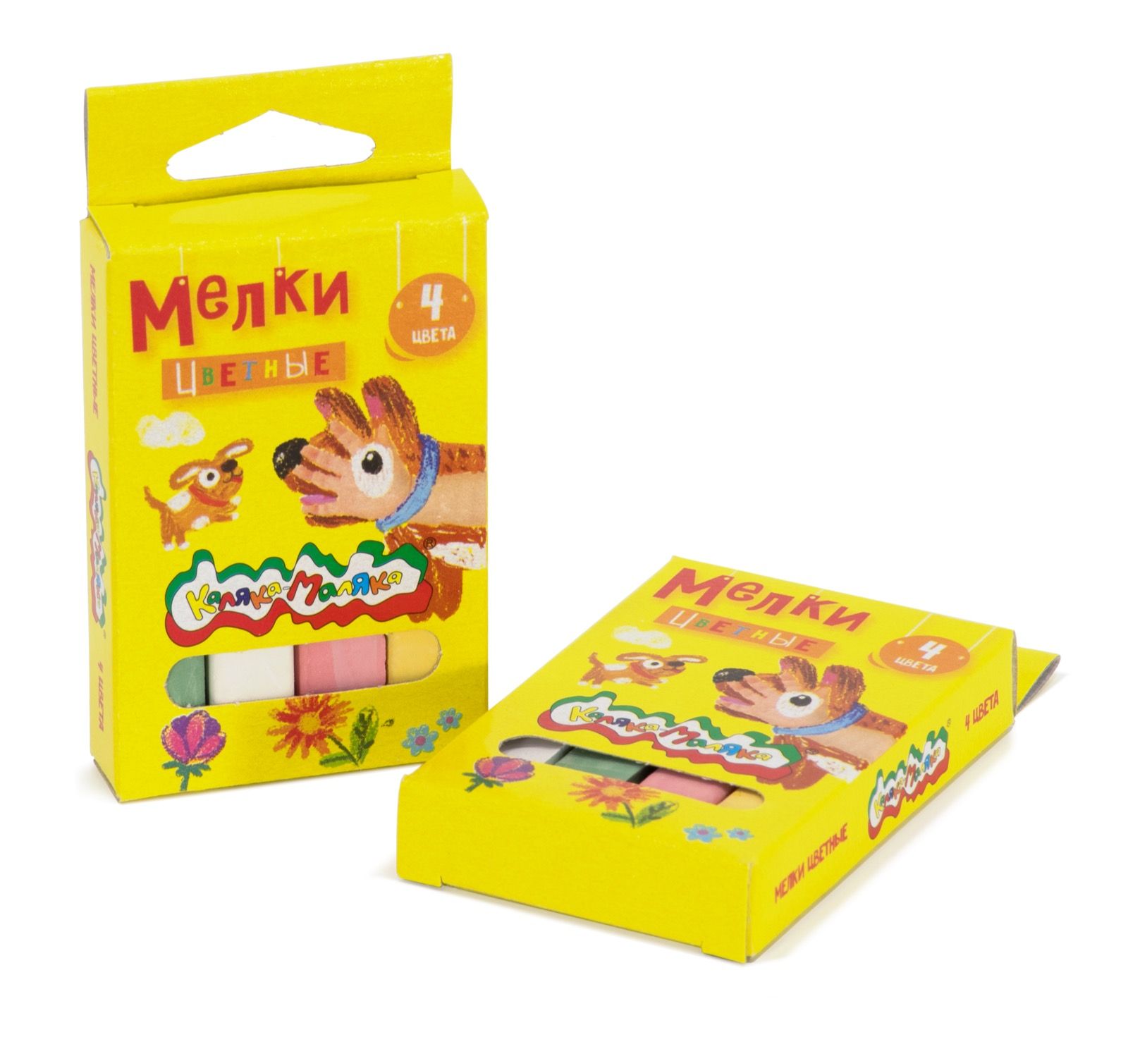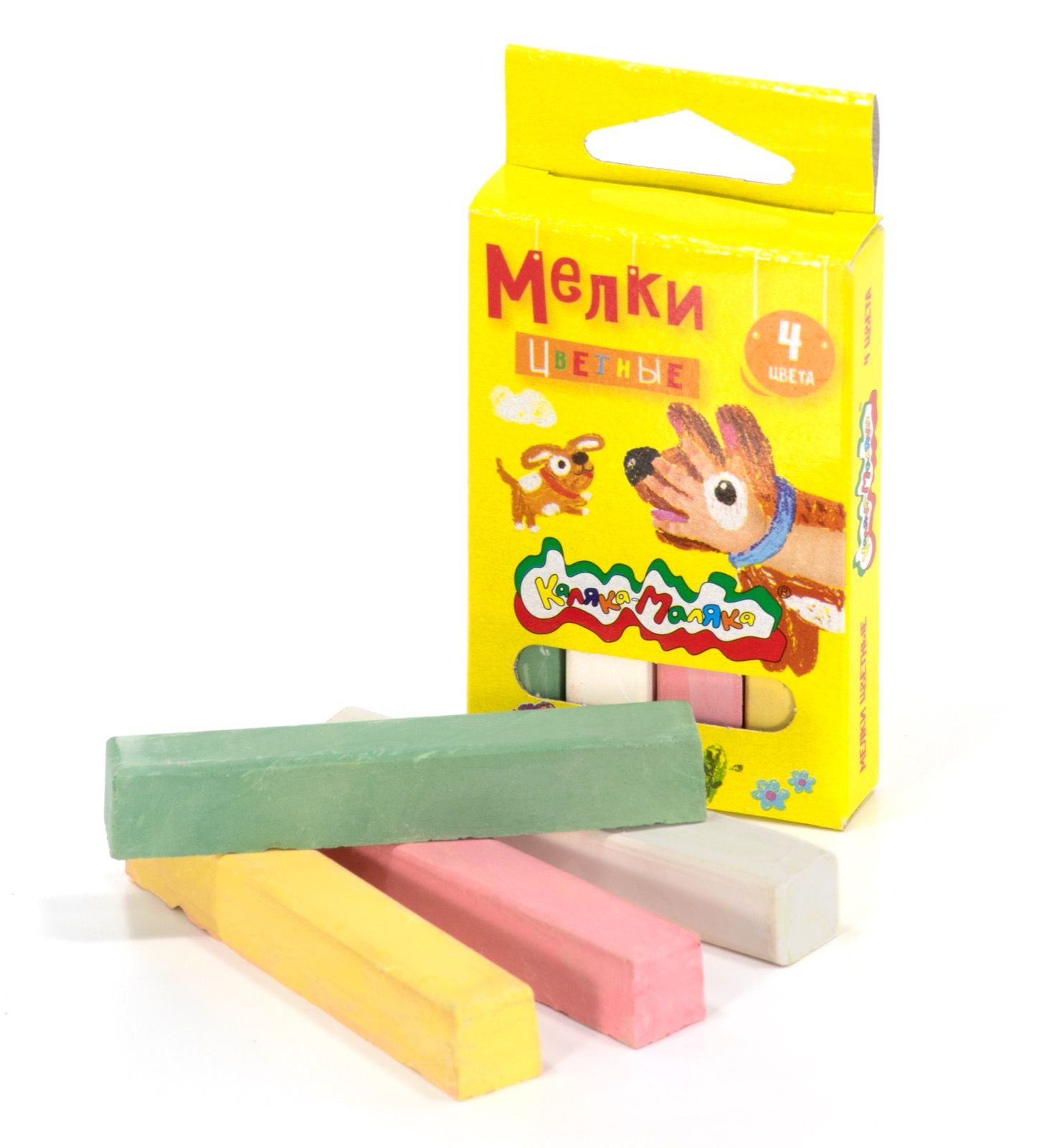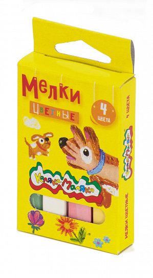 Мелки цветные Каляка-Маляка 4 шт, квадратные, в картонной упаковке с европодвесом