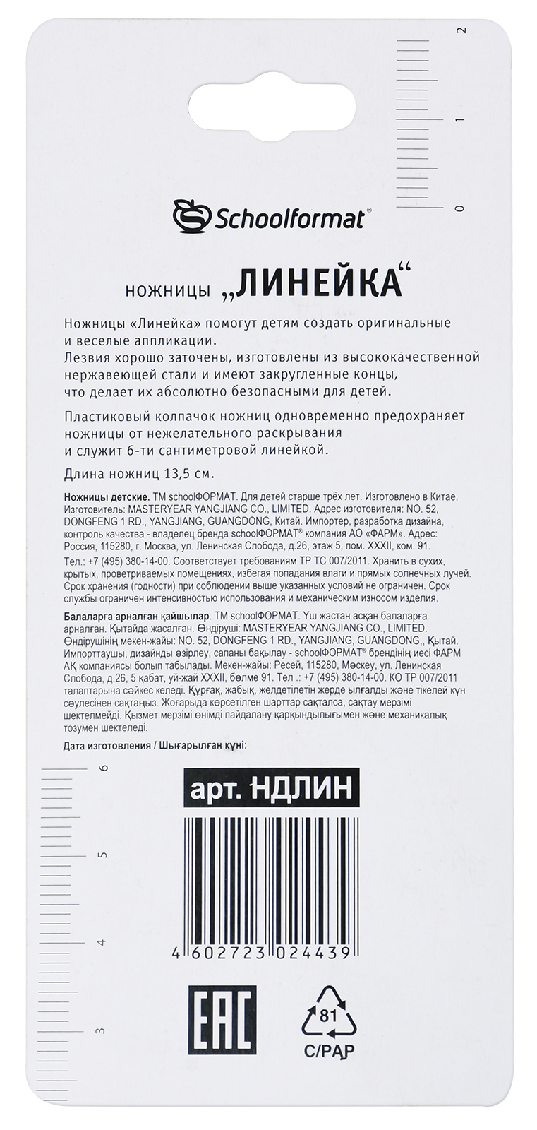 Также на ножницы нанесена линейка — это позволит школьнику контролировать длину реза, что придаст большую аккуратность создаваемым поделкам.