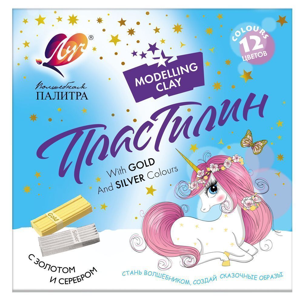 Пластилин «Волшебная палитра» предназначен для лепки и моделирования в детском творчестве. Пластилин рекомендуют не только педагоги и родители, но и профессиональные мультипликаторы. В наборе два брусочка пластилина золотого и серебряного цветов. В меру мягкий и в меру твёрдый, не рвётся и не крошится при перегибании, поделки из него отлично держат форму, не выцветают. Без выраженного запаха, не липнет к рукам.
