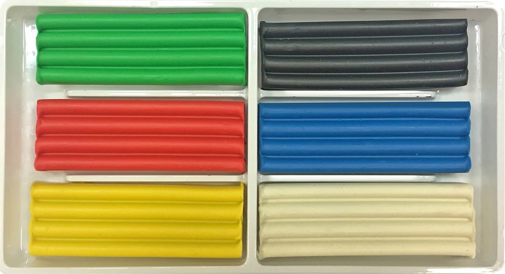 Без выраженного запаха, не липнет к рукам. Выпускается в картонной коробке без стека 6, 8, 10, 12, 16, 24 и 30 цветов.